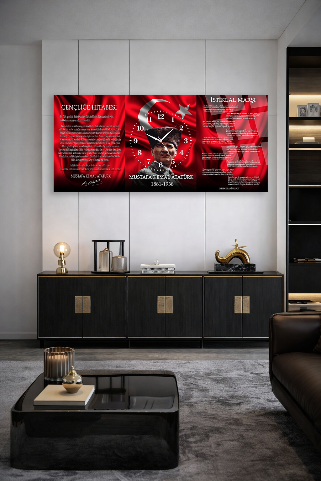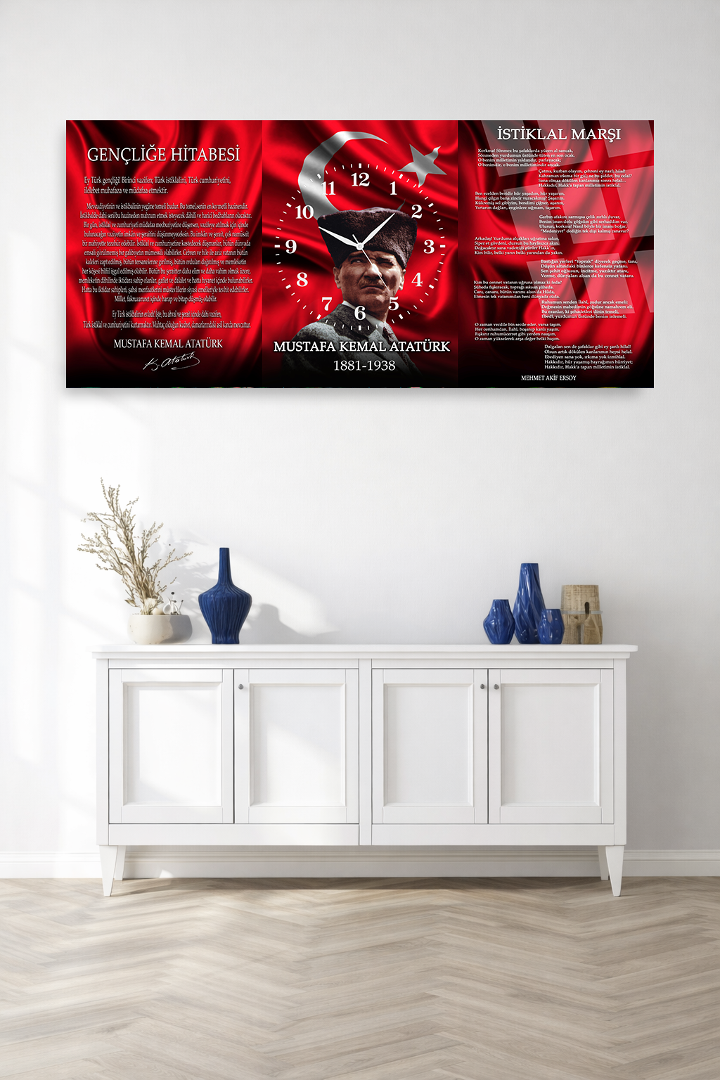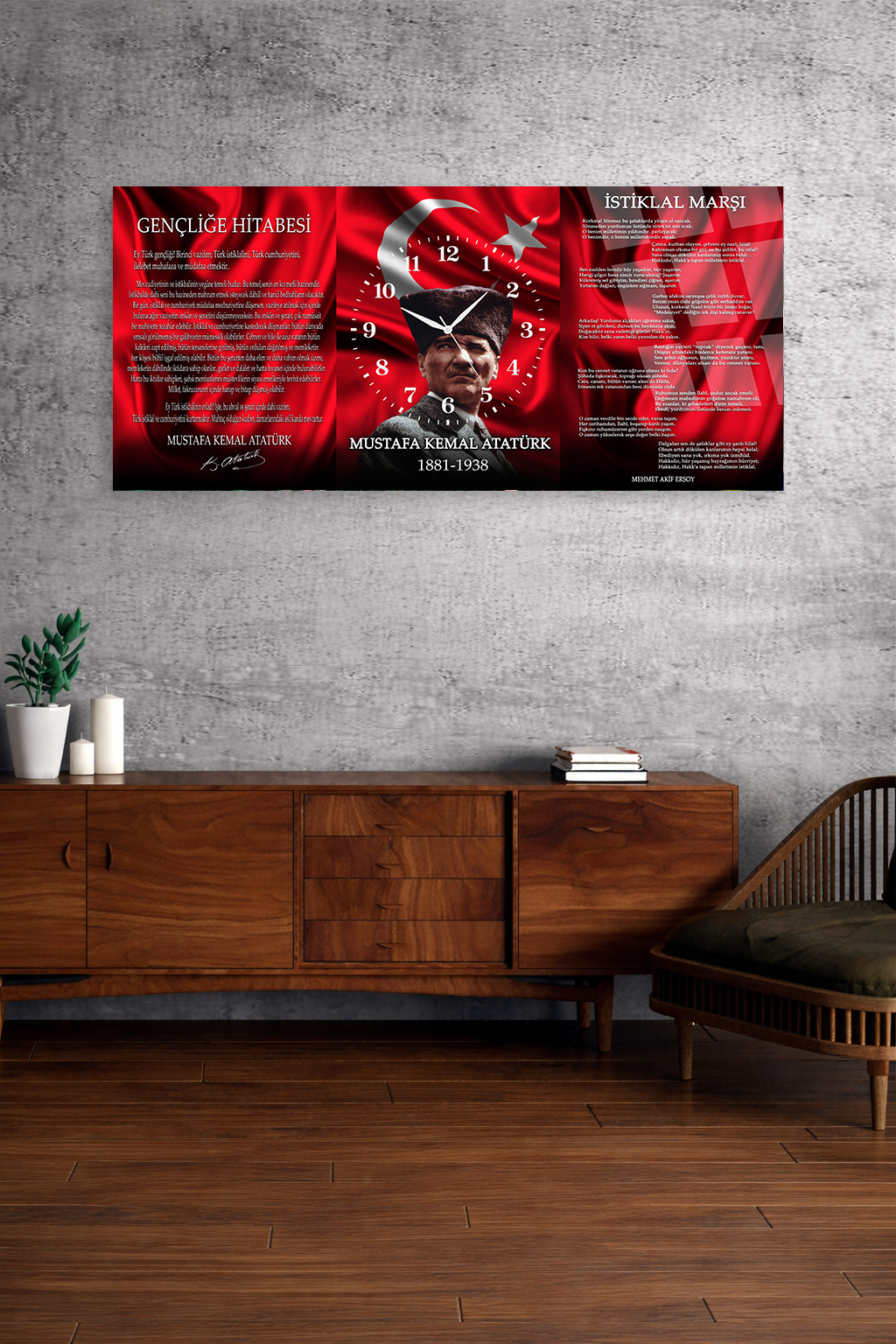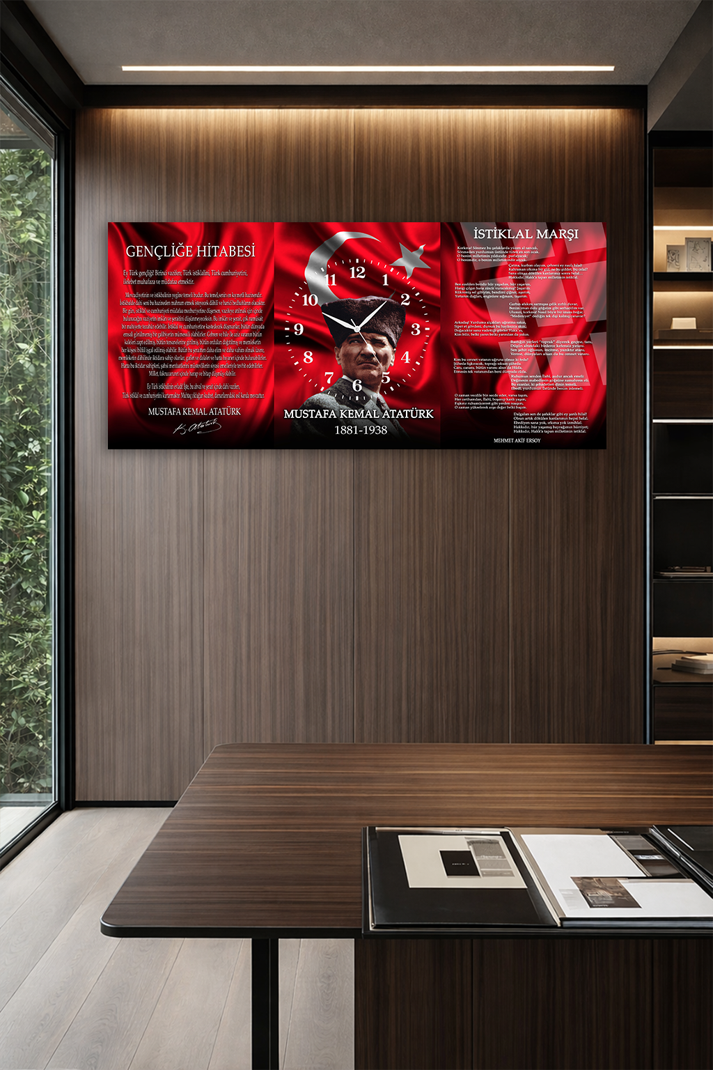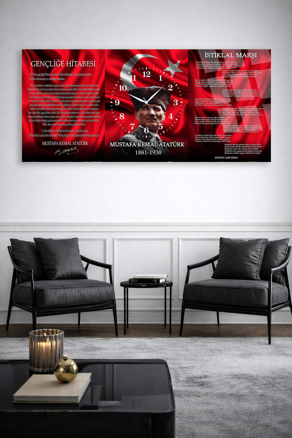 KIRILMAZ CAM DUVAR SAATİ , HEM TABLO HEM SAAT ATATÜRK BAYRAK VE GENÇLİĞE HİTABE EV OFİS HEDİYESİ