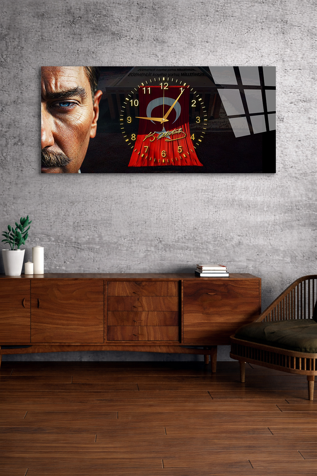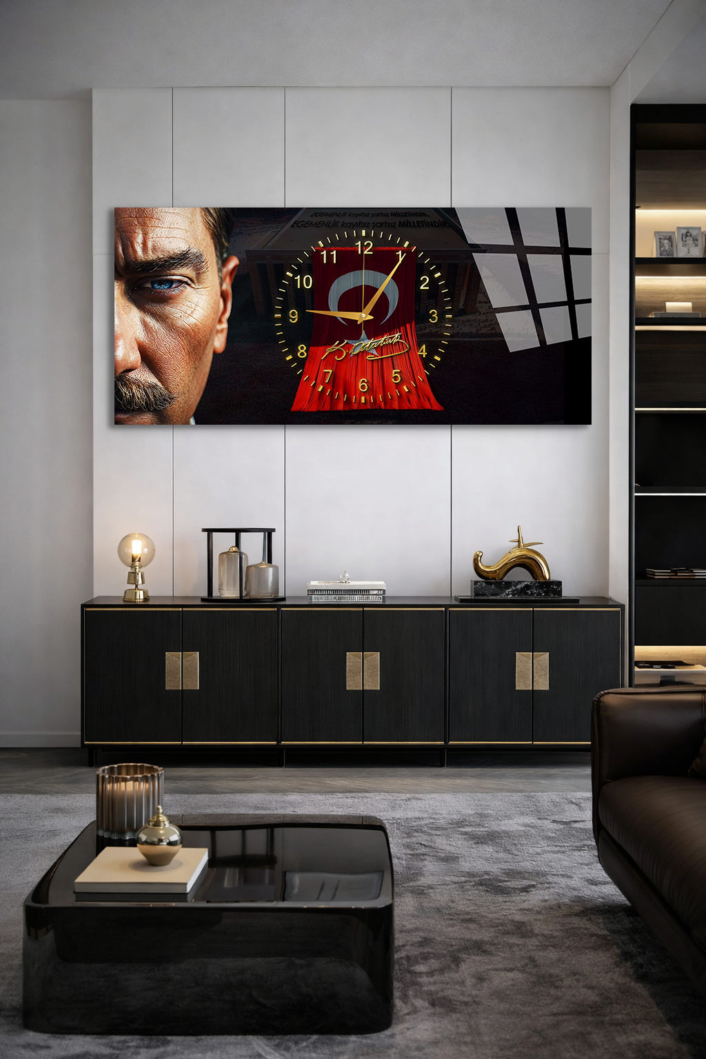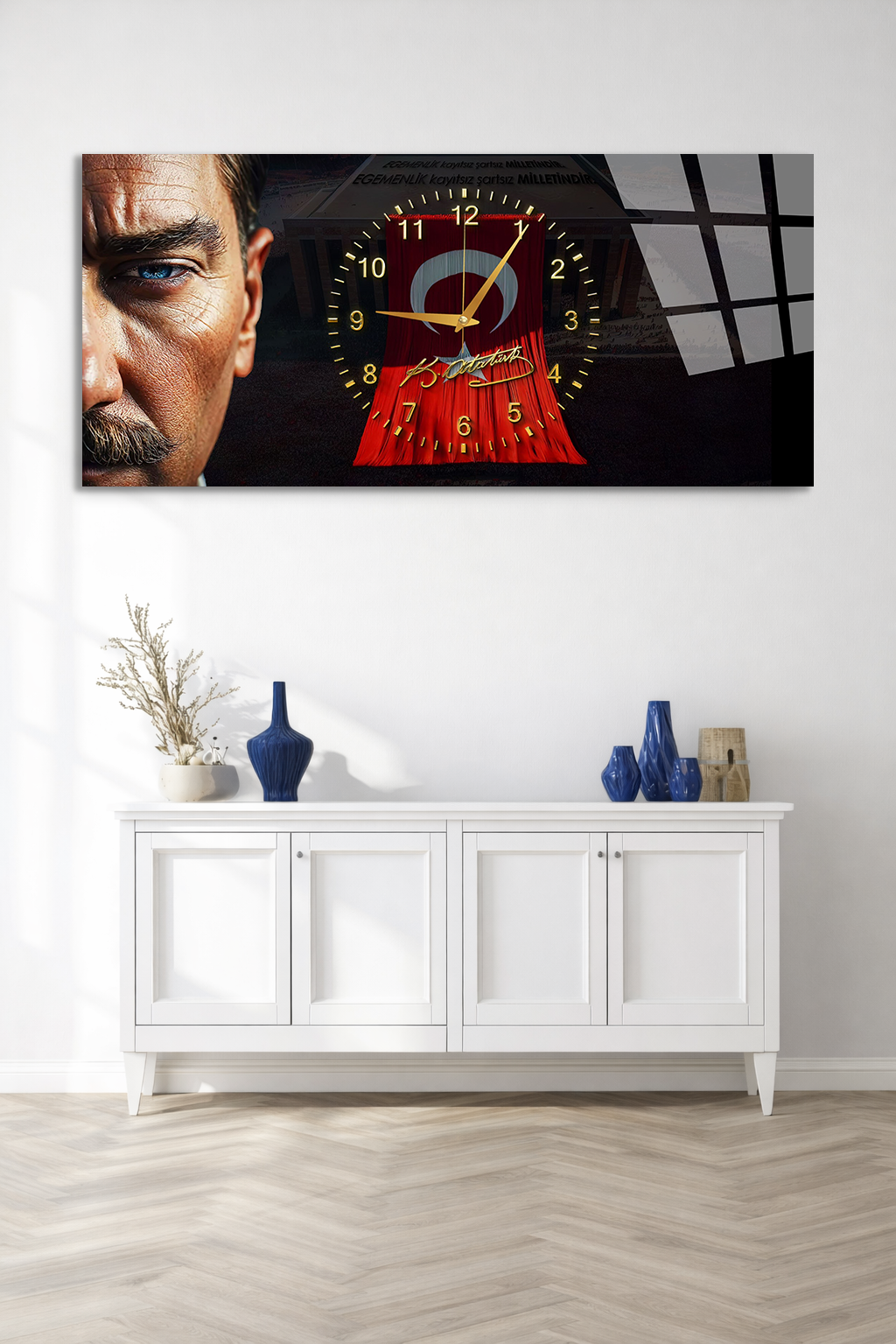 KIRILMAZ CAM DUVAR SAATİ , HEM TABLO HEM SAAT ATATÜRK İMZALI TÜRK BAYRAĞI EV OFİS HEDİYESİ