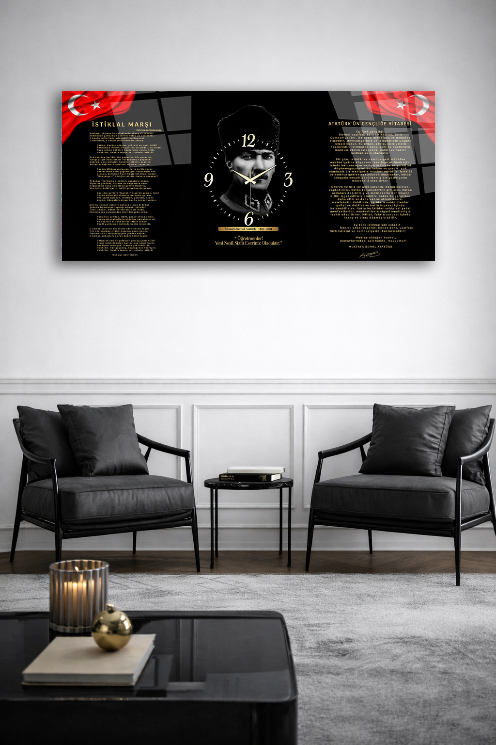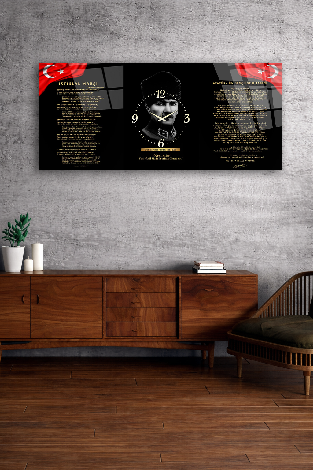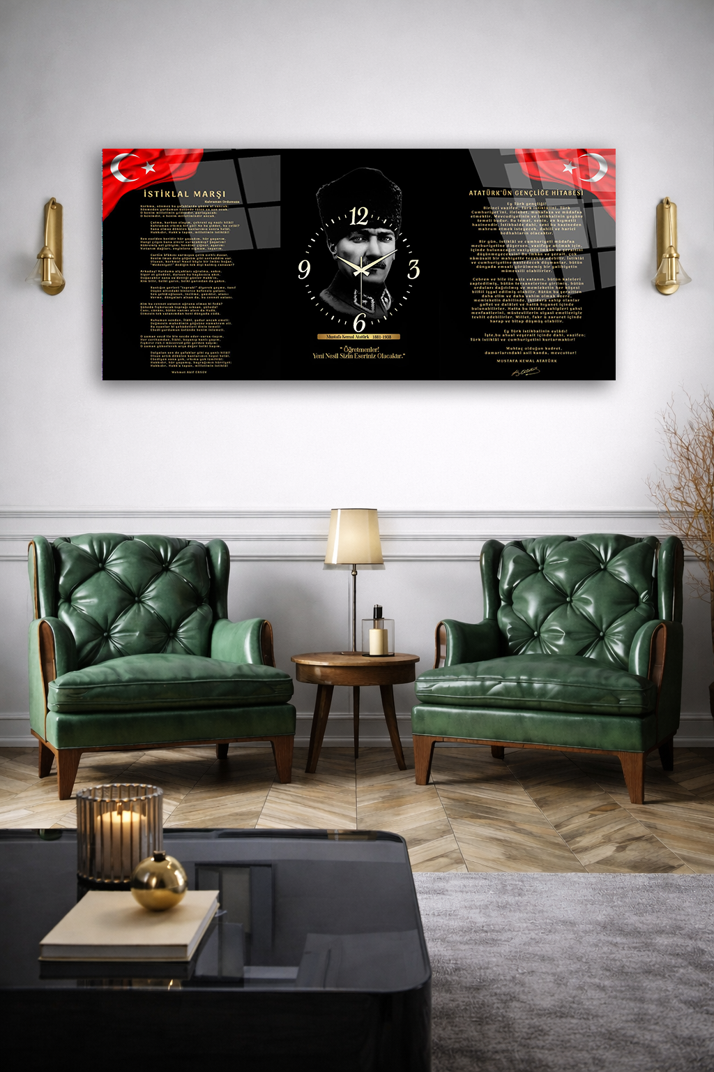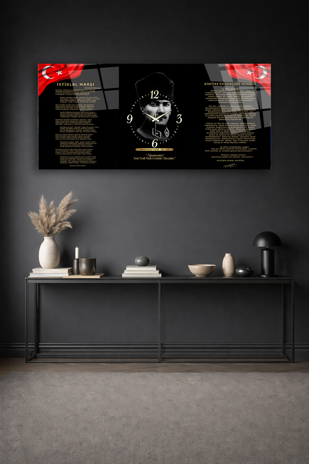 KIRILMAZ CAM DUVAR SAATİ , HEM TABLO HEM SAAT ATATÜRK İSTİKLAL MARŞI GENÇLİĞE HİTABE OFİS HEDİYESİ