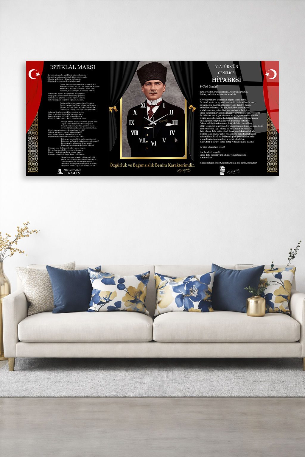 KIRILMAZ CAM DUVAR SAATİ , HEM TABLO HEM SAAT ATATÜRK İSTİKLAL VE HİTABE TASARIM EV OFİS HEDİYESİ