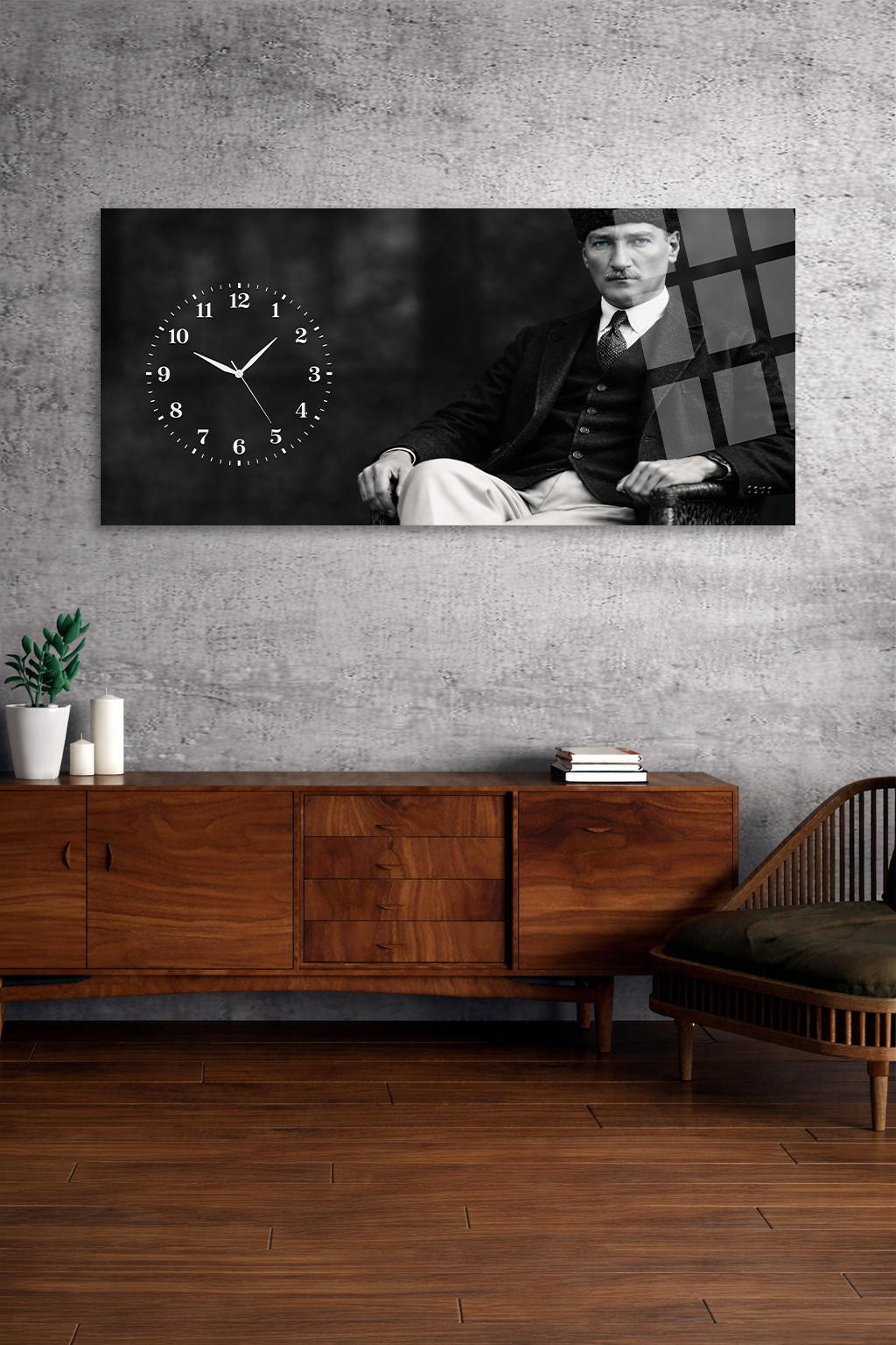 KIRILMAZ CAM DUVAR SAATİ, HEM TABLO HEM SAAT ATATÜRK ÖZEL EV OFİS HEDİYESİ