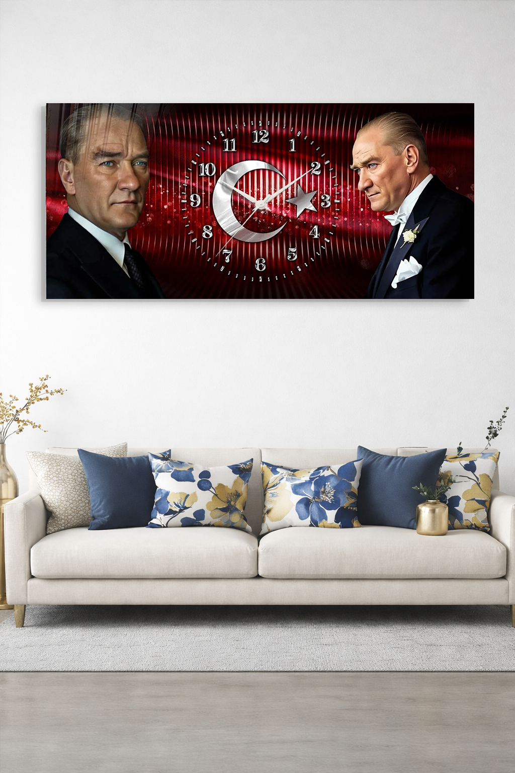 KIRILMAZ CAM DUVAR SAATİ , HEM TABLO HEM SAAT ATATÜRK TÜRK BAYRAĞI TASARIM EV OFİS HEDİYESİ