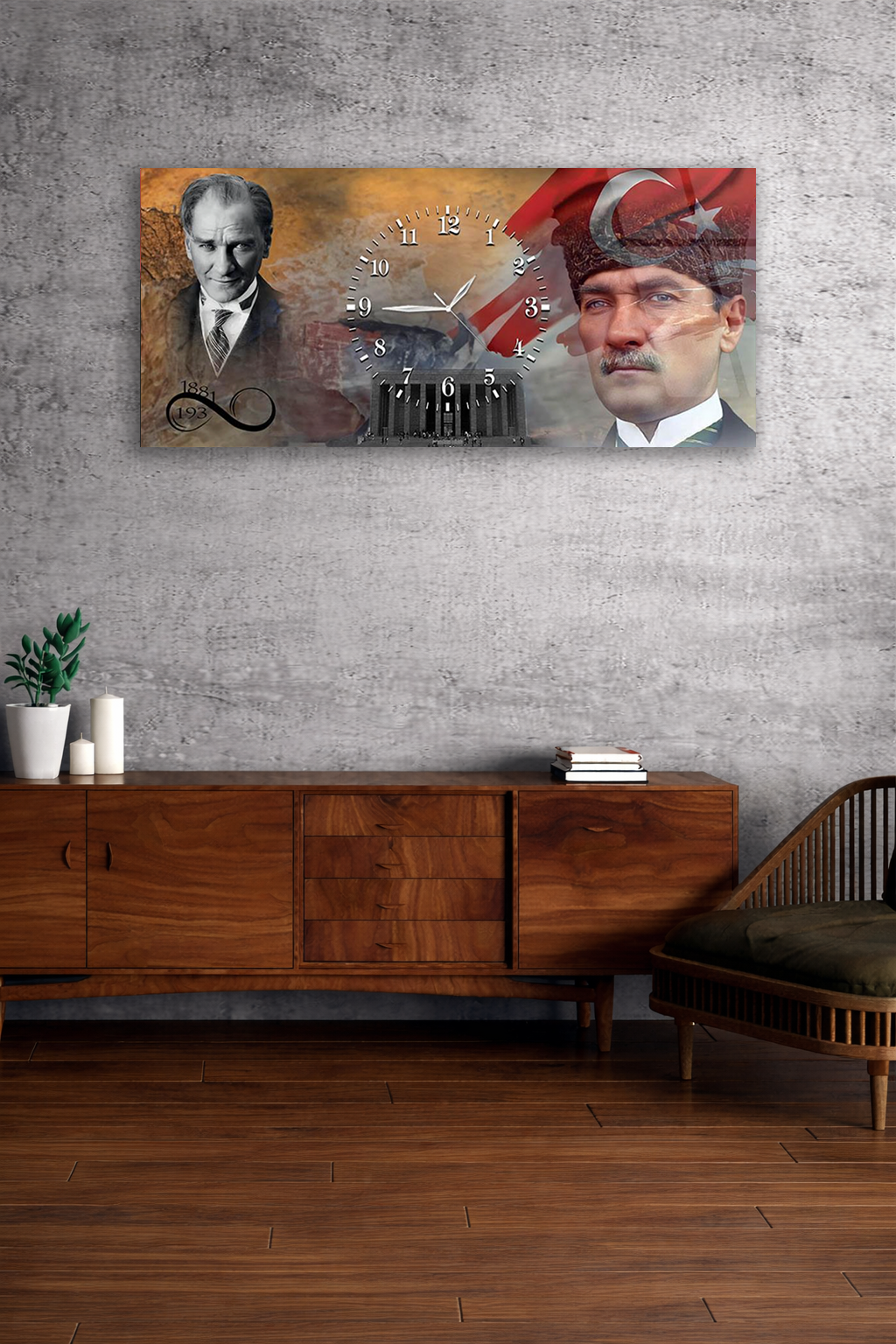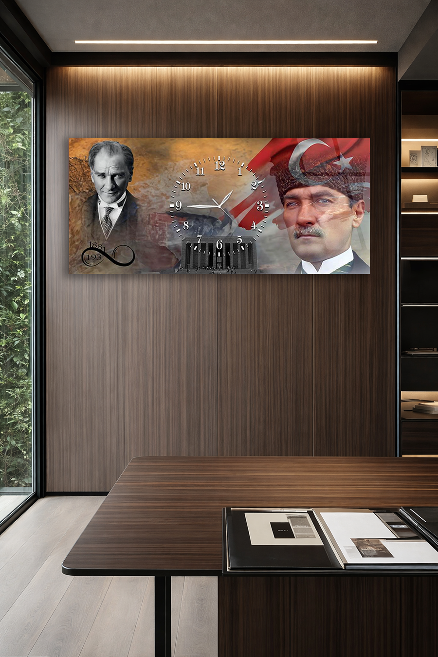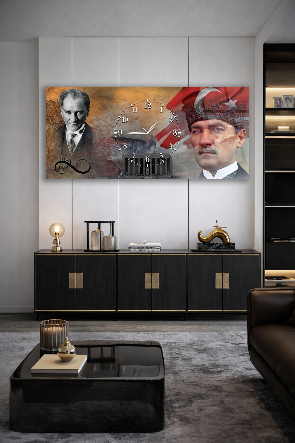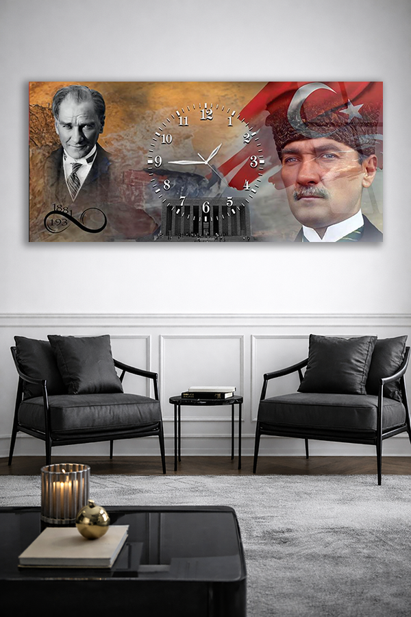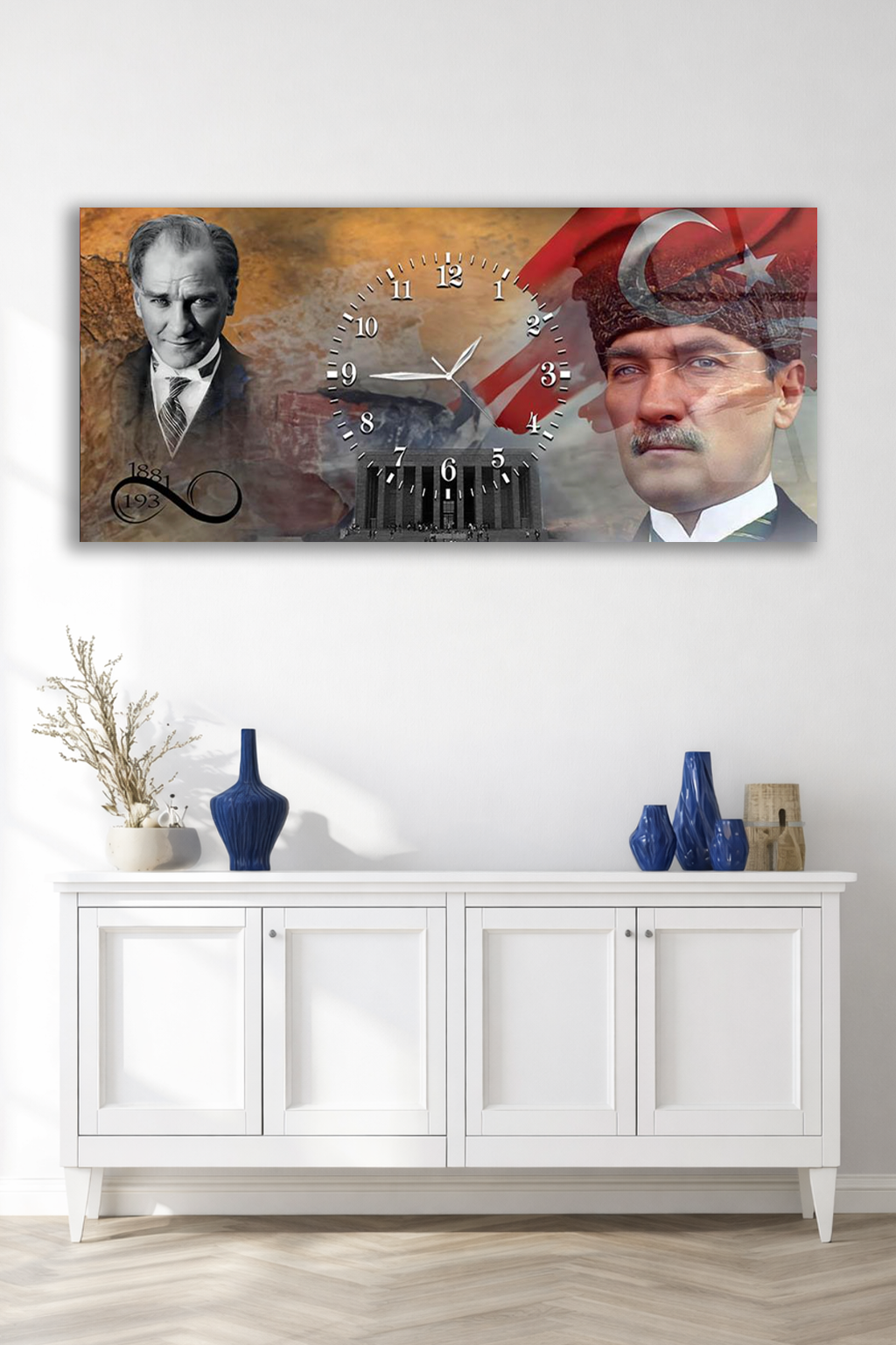 KIRILMAZ CAM DUVAR SAATİ , HEM TABLO HEM SAAT ATATÜRK VE ANITKABİR TASARIMI EV OFİS HEDİYESİ