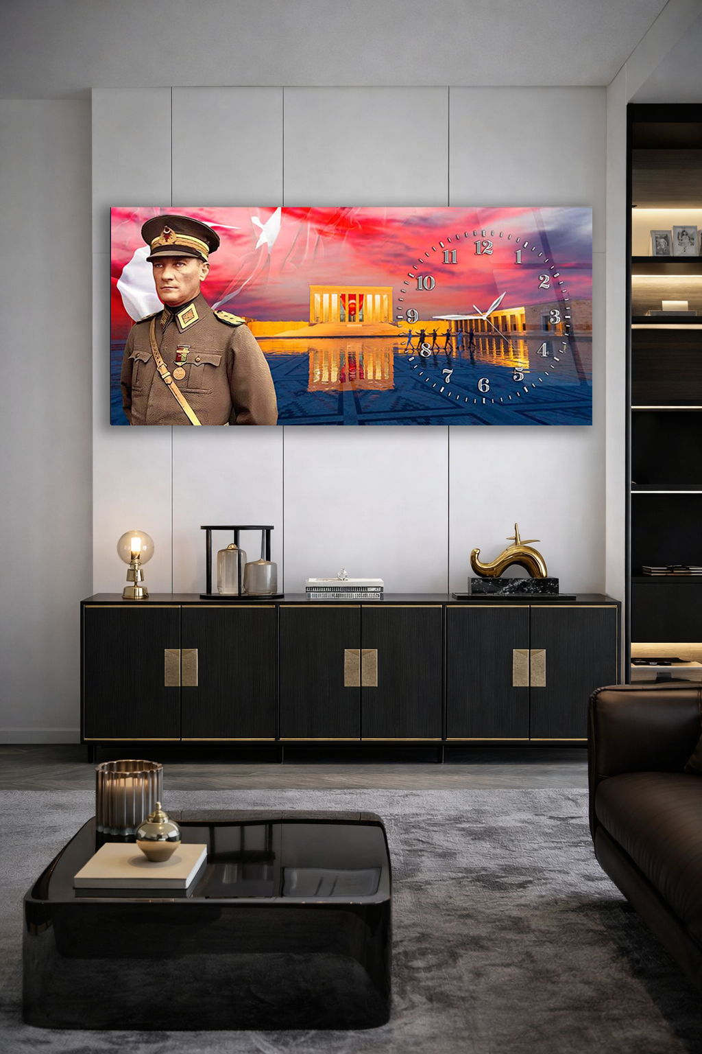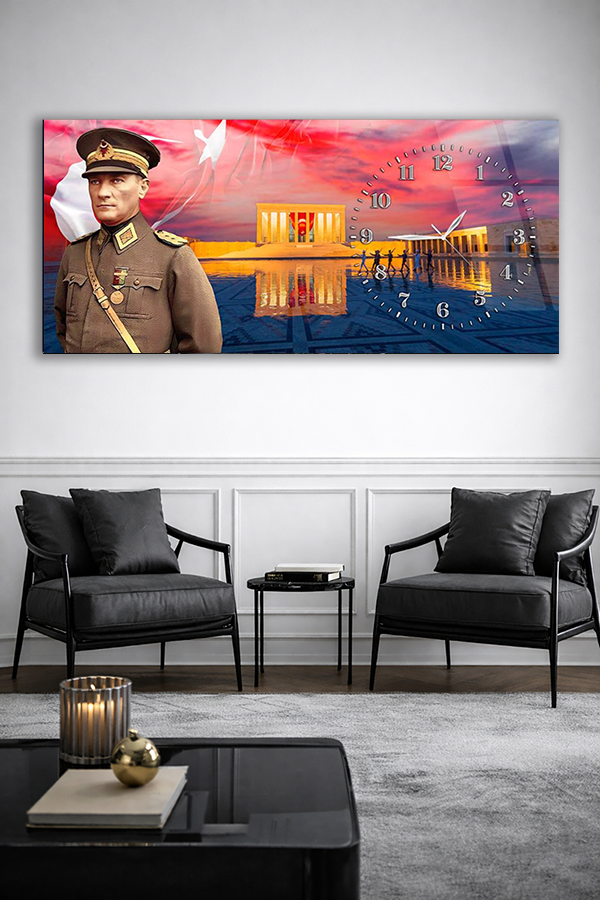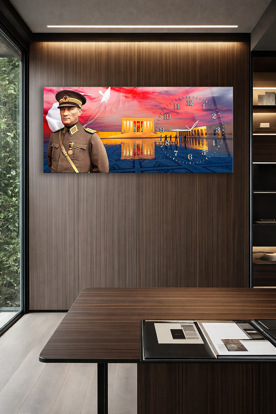 KIRILMAZ CAM DUVAR SAATİ , HEM TABLO HEM SAAT ATATÜRK VE ANITKABİR TEMALI SAAT EV OFİS HEDİYESİ