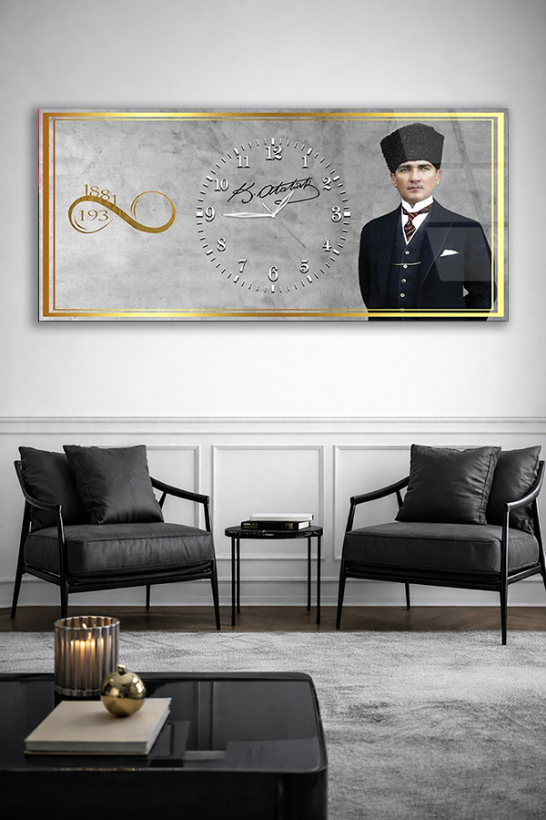 KIRILMAZ CAM DUVAR SAATİ , HEM TABLO HEM SAAT ATATÜRK VE TARİHSEL TÜRKİYE TEMALI SANATSAL TASARIM