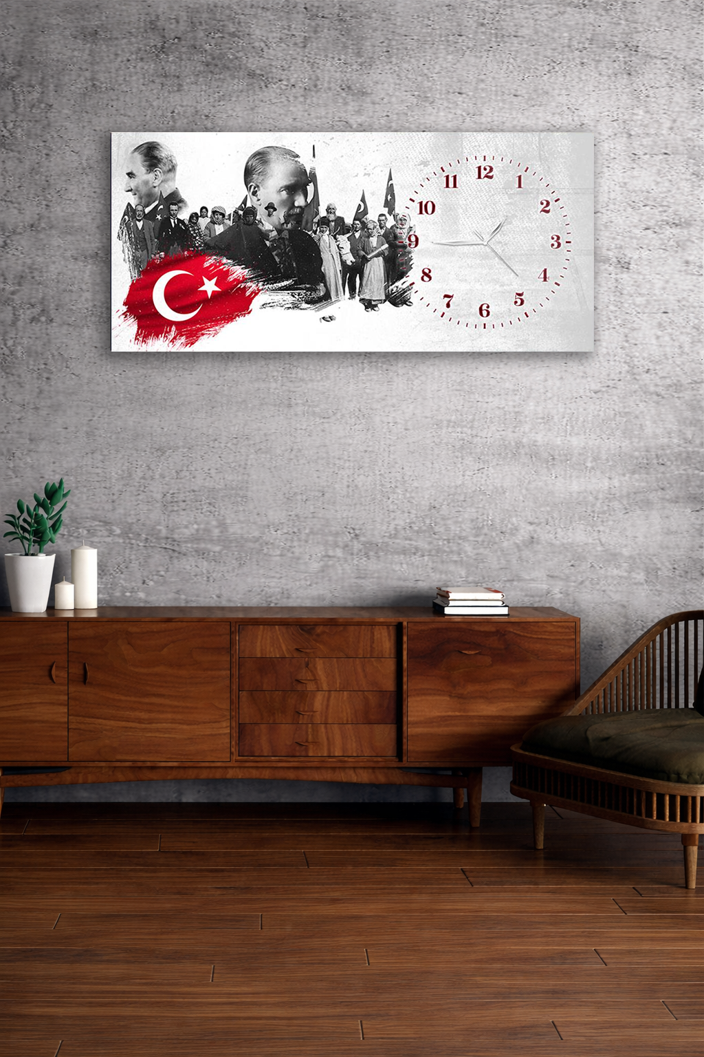 KIRILMAZ CAM DUVAR SAATİ , HEM TABLO HEM SAAT ATATÜRK VE TÜRK BAYRAĞI SAAT EV OFİS HEDİYESİ