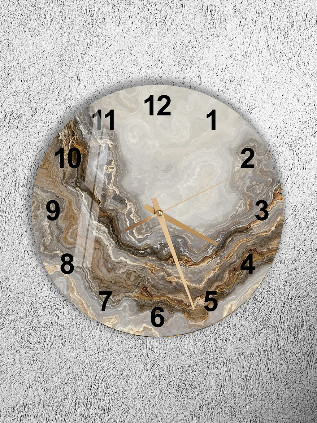 KIRILMAZ CAM DUVAR SAATİ, HEM TABLO HEM SAAT BEJ DOĞAL MERMER DOKULU ŞIK EV OFİS HEDİYESİ