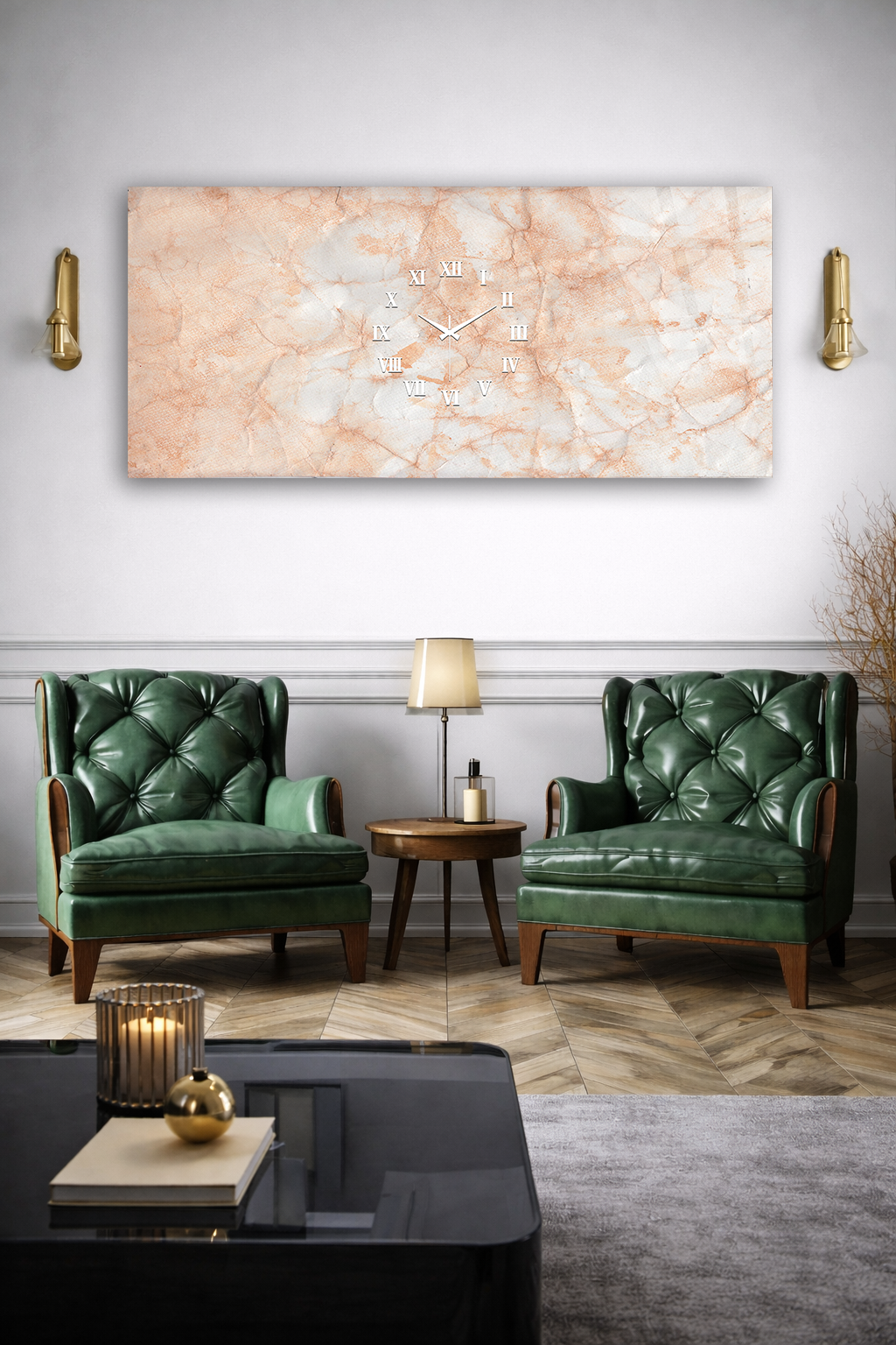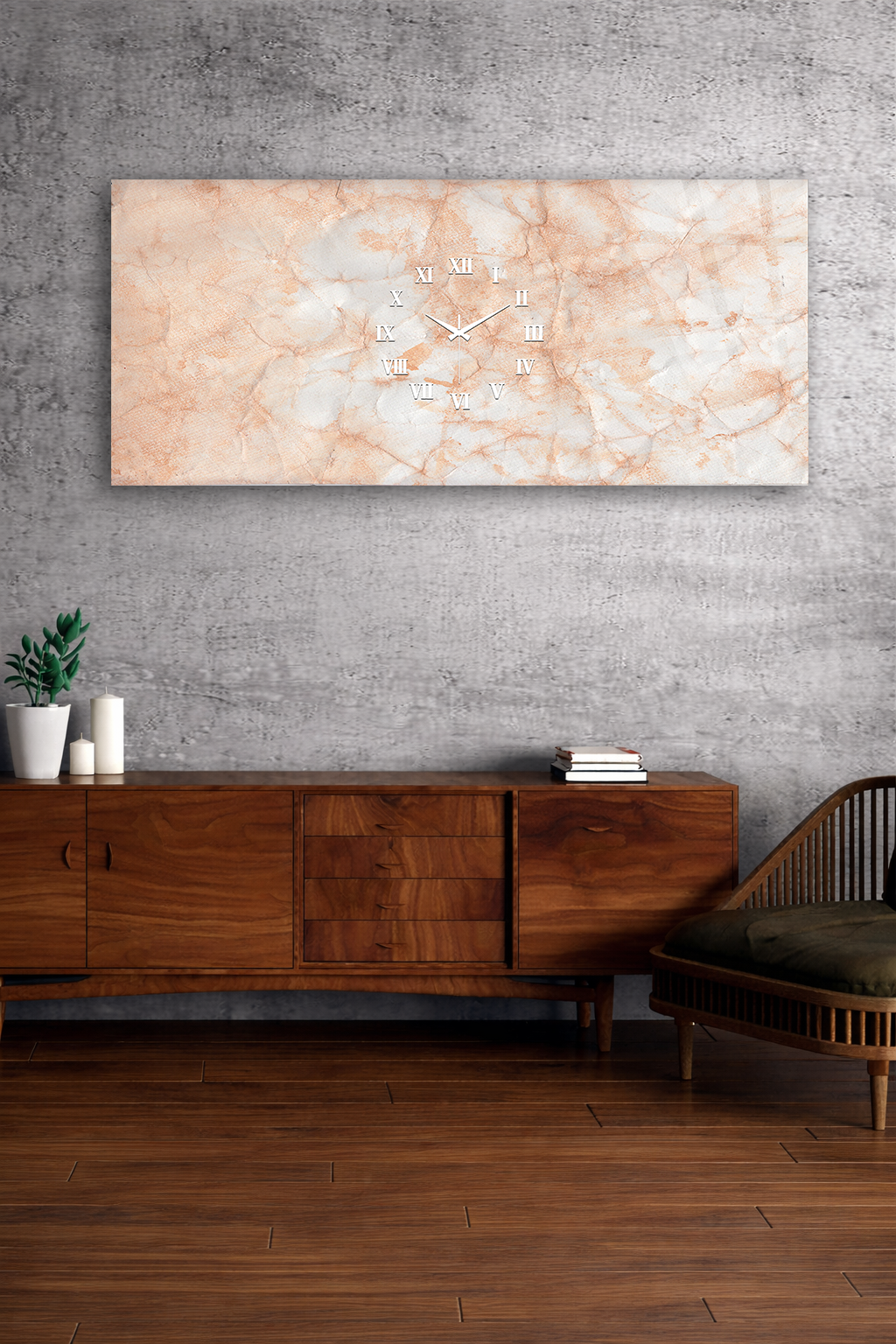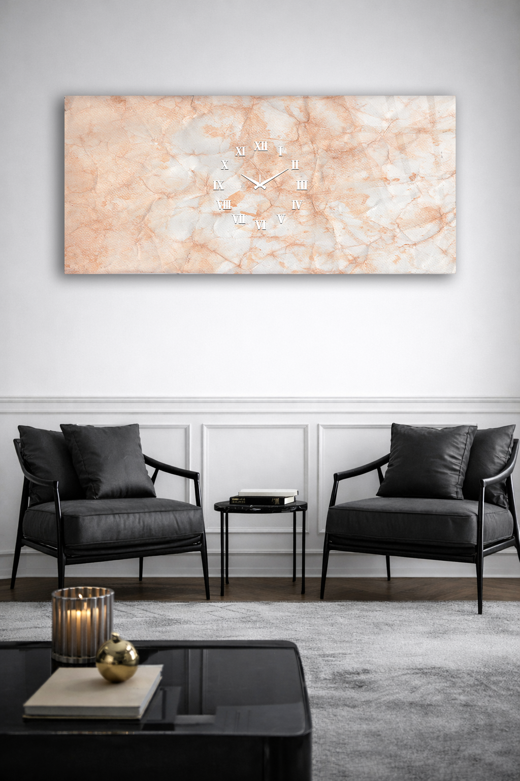 KIRILMAZ CAM DUVAR SAATİ , HEM TABLO HEM SAAT BEJ MERMER SADƏ VE ŞIK TASARIM EV OFİS HEDİYESİ