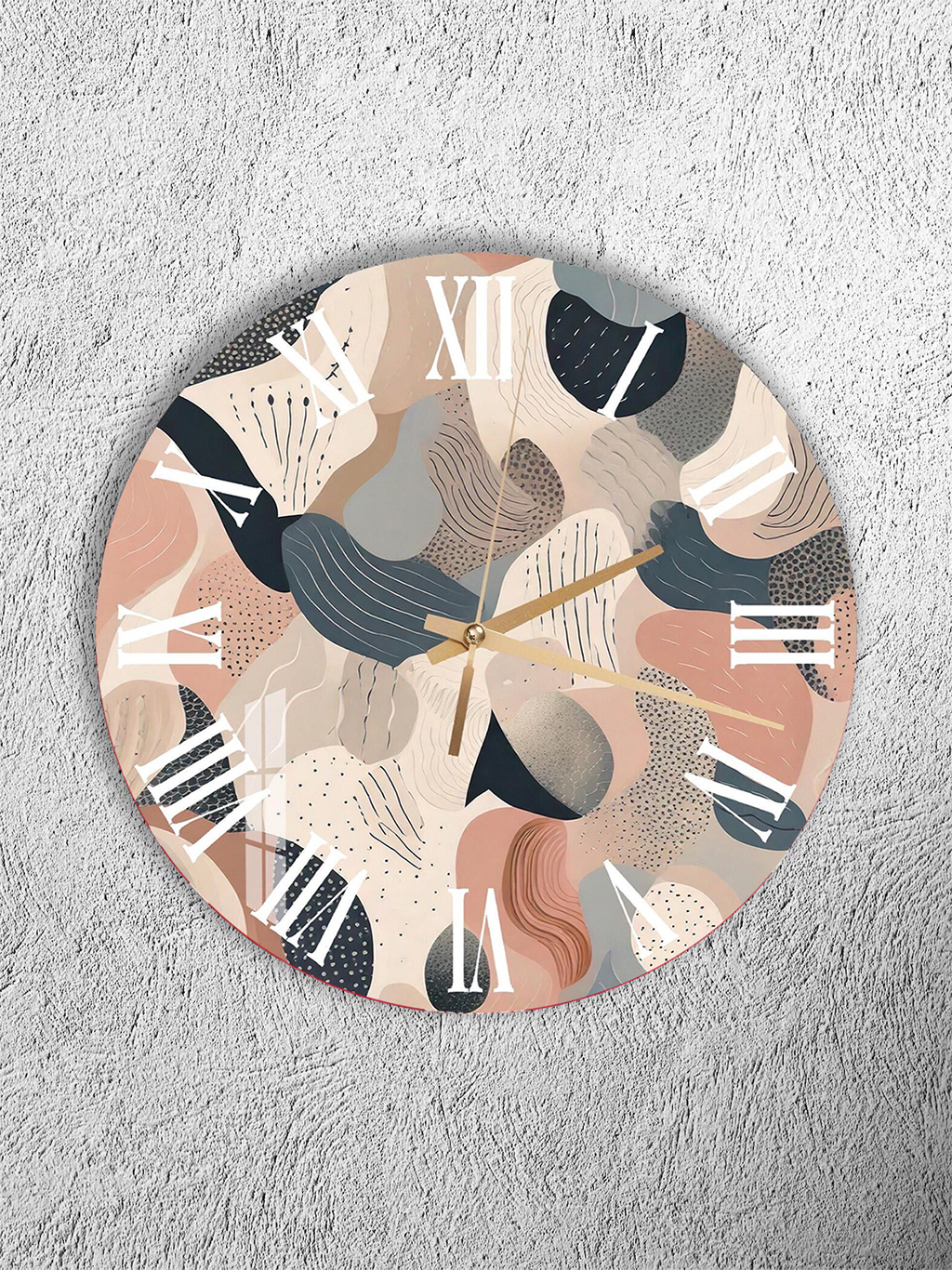 KIRILMAZ CAM DUVAR SAATİ, HEM TABLO HEM SAAT BEJ PUDRA SOYUT ORGANİK DESEN EV OFİS HEDİYESİ