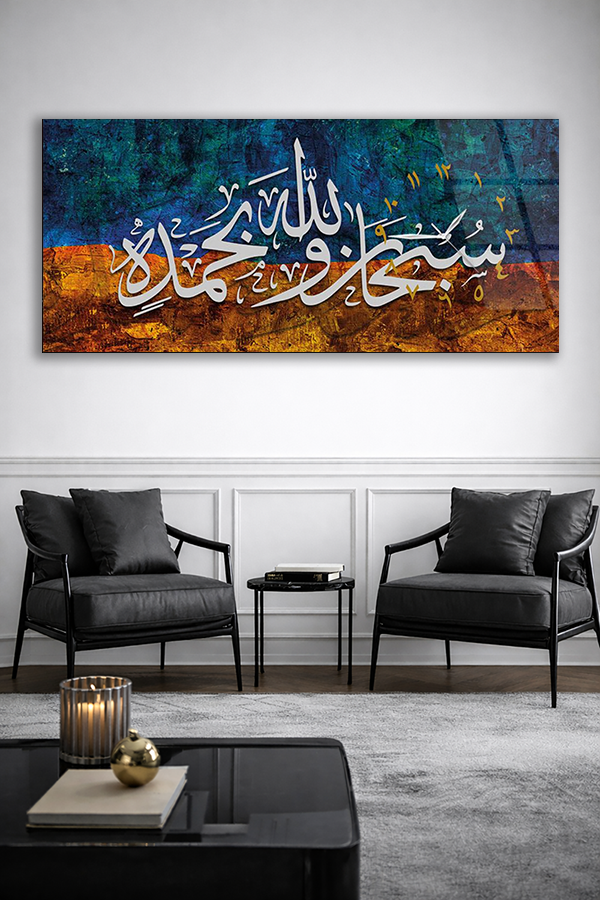 KIRILMAZ CAM DUVAR SAATİ , HEM TABLO HEM SAAT BESMELE HAT SANATI ŞIK DUVAR SAATİ EV OFİS HEDİYESİ