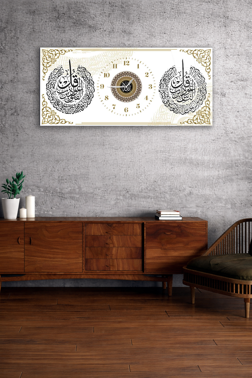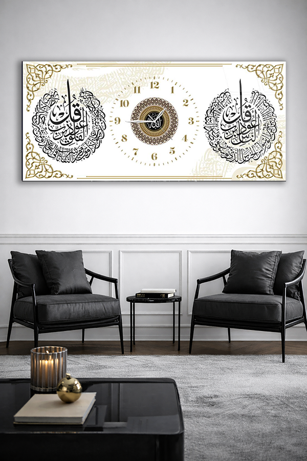 KIRILMAZ CAM DUVAR SAATİ , HEM TABLO HEM SAAT BEYAZ ZEMİN İSLAMİ CAM SAAT EV OFİS HEDİYESİ