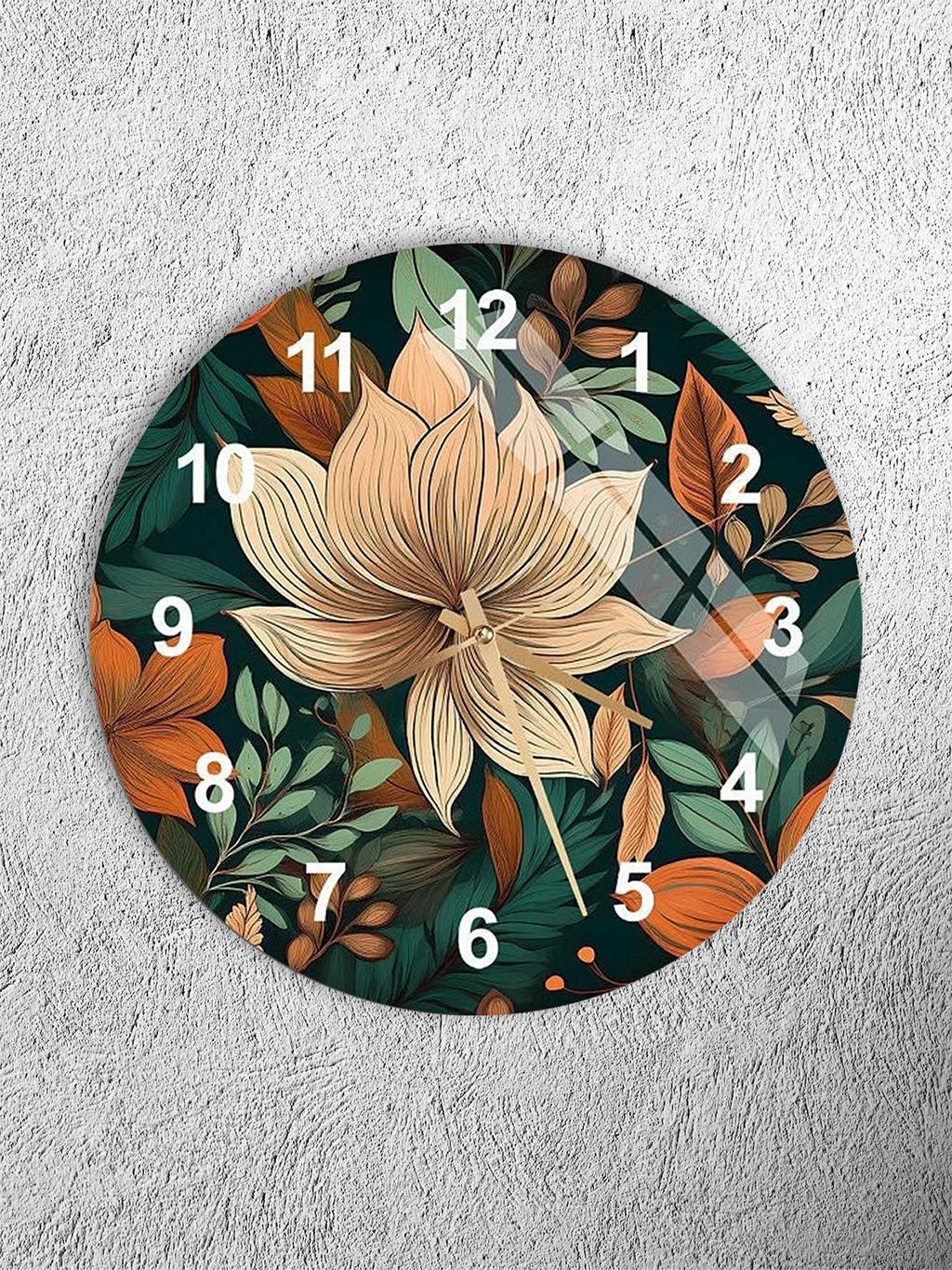 KIRILMAZ CAM DUVAR SAATİ, HEM TABLO HEM SAAT BOTANİK ÇİÇEK DESEN DOĞAL EV OFİS HEDİYESİ