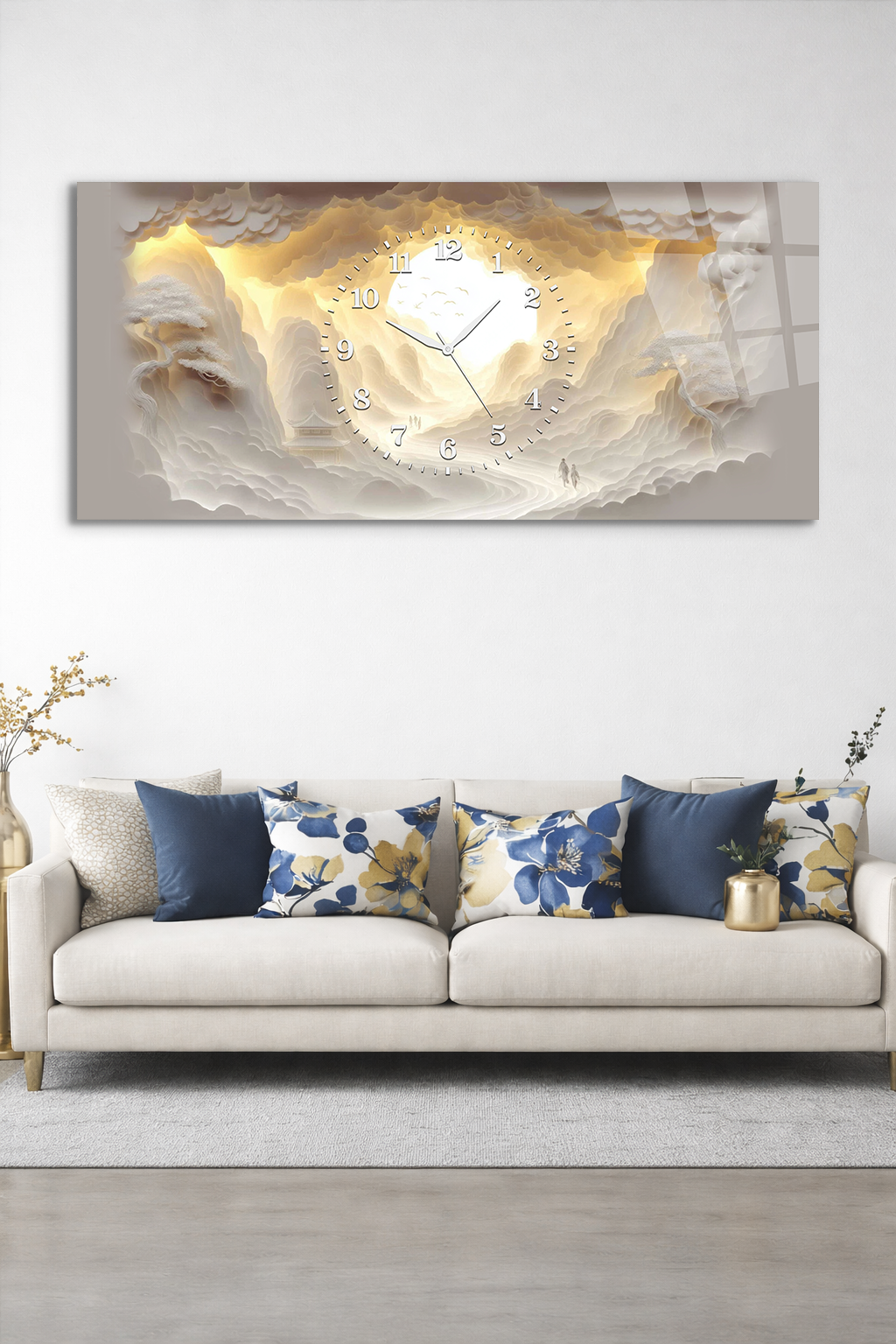 KIRILMAZ CAM DUVAR SAATİ, HEM TABLO HEM SAAT BULUT VE IŞIK YOLU EV OFİS HEDİYESİ