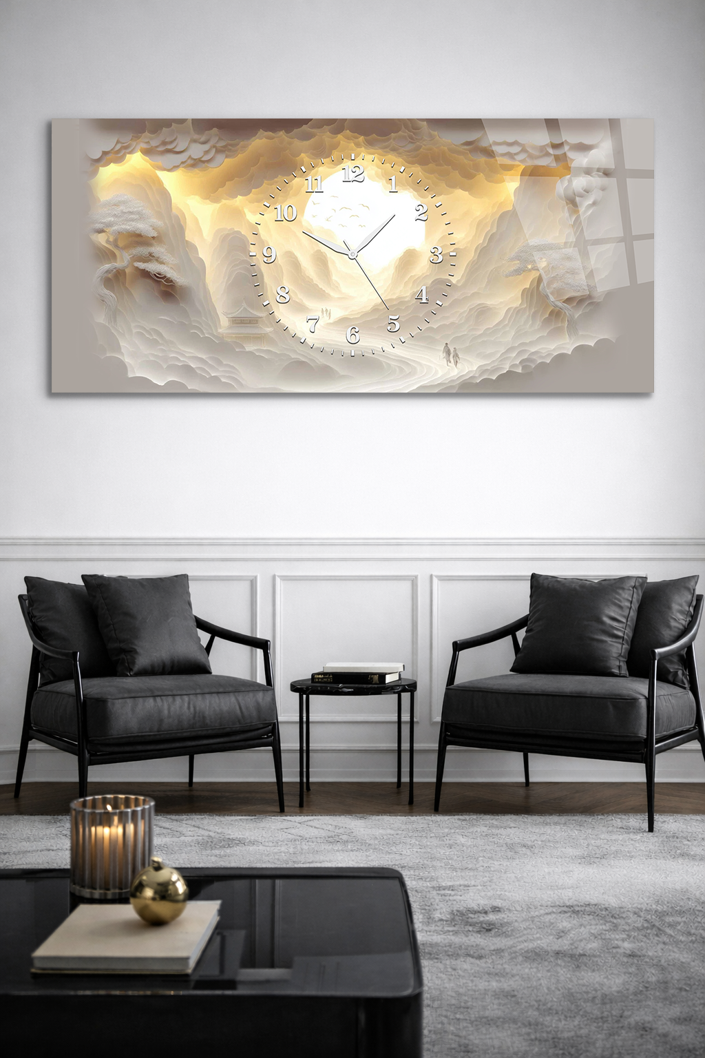 Hem şık bir tablo hem de işlevsel bir saat olarak tasarlanan bu özel ürün, ev ve ofis dekorasyonuna modern bir dokunuş katar.