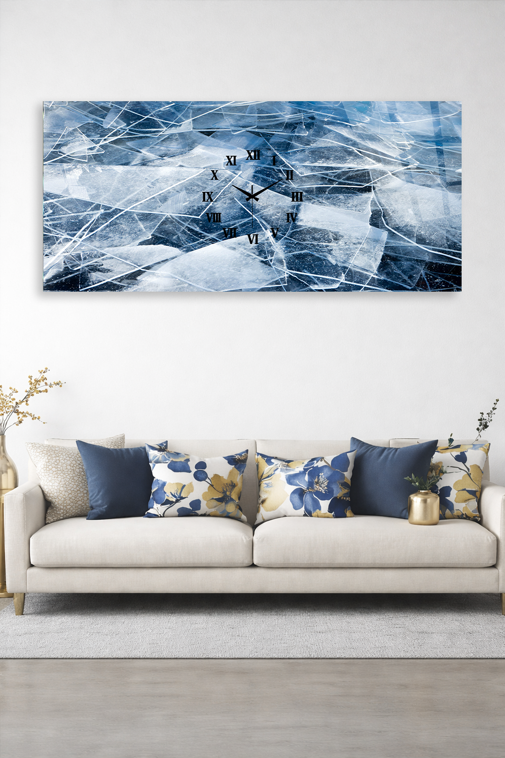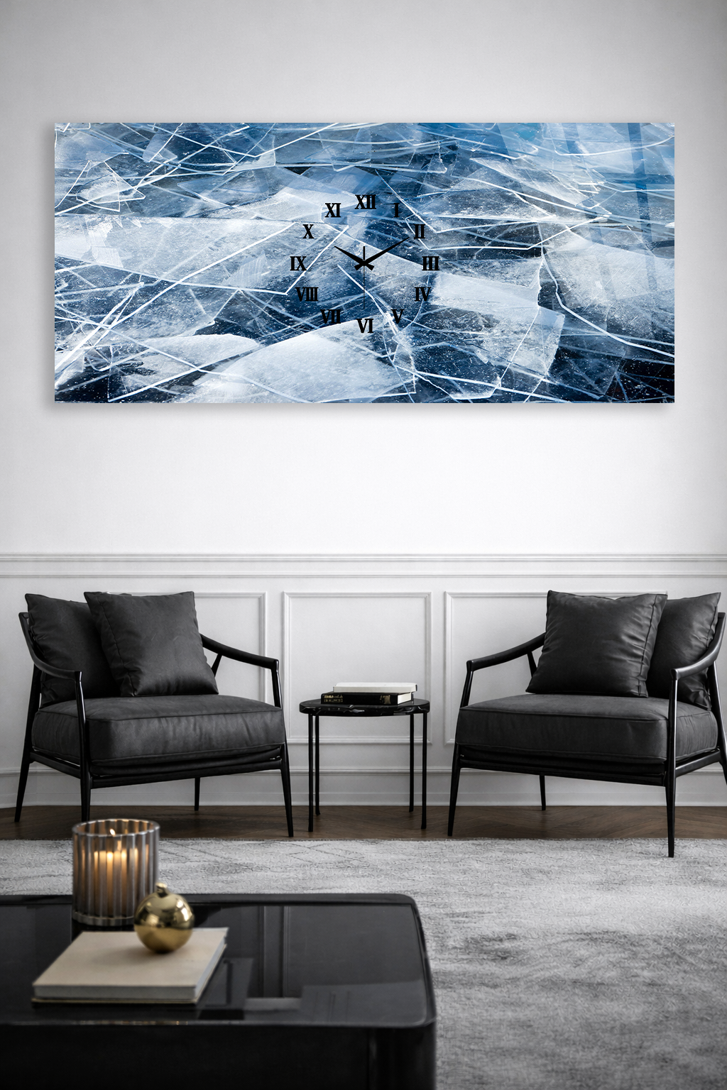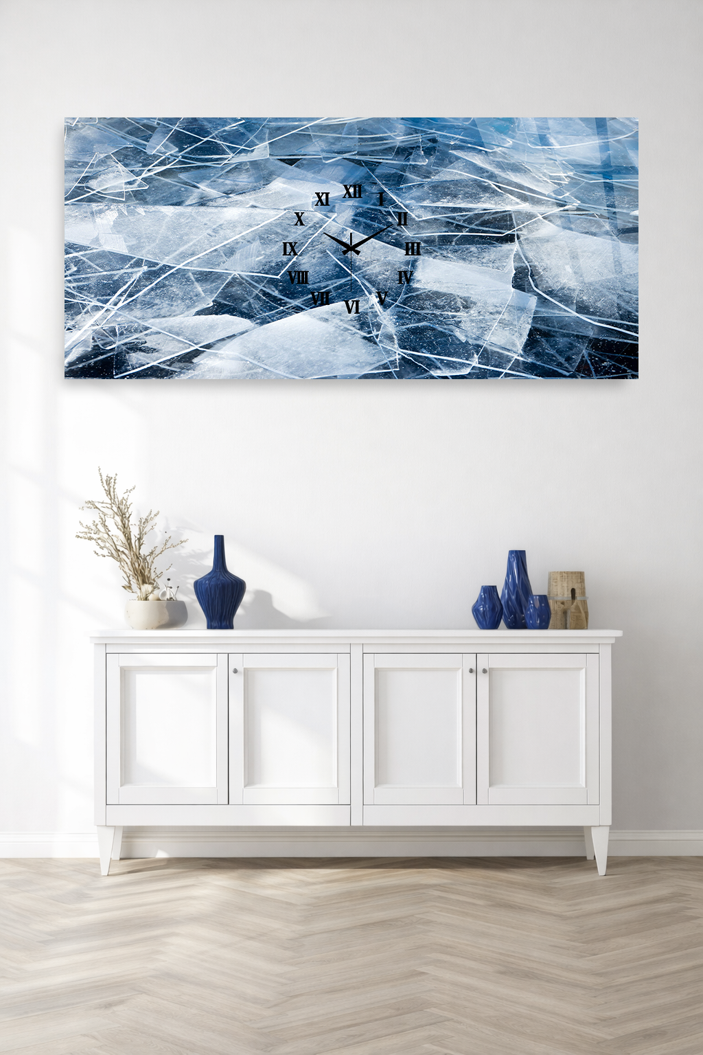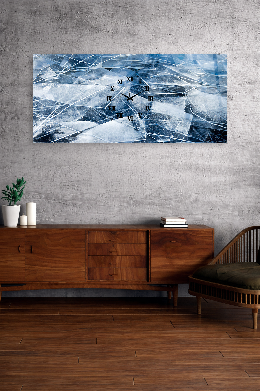 KIRILMAZ CAM DUVAR SAATİ , HEM TABLO HEM SAAT BUZ KIRIĞI CAM EFEKTLİ EV OFİS HEDİYESİ