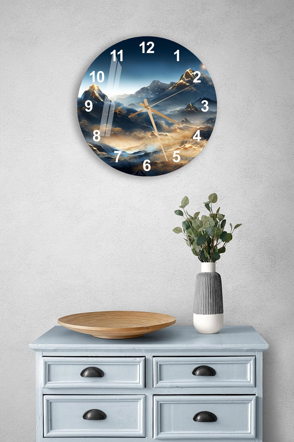 KIRILMAZ CAM DUVAR SAATİ, HEM TABLO HEM SAAT DAĞ MANZARASI DOĞA TEMALI EV OFİS HEDİYESİ