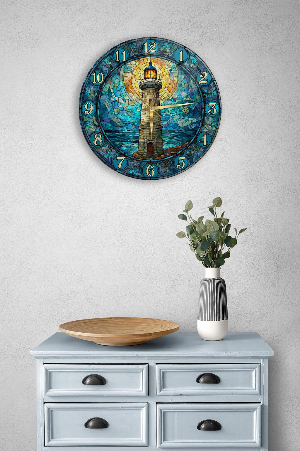 KIRILMAZ CAM DUVAR SAATİ, HEM TABLO HEM SAAT DENİZ FENERİ VİTRAY SANAT TASARIM EV OFİS HEDİYESİ