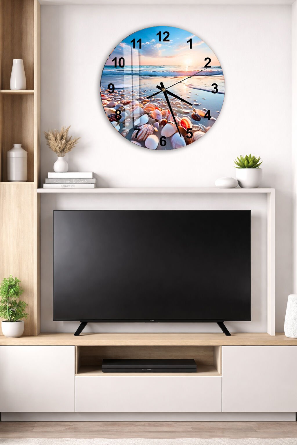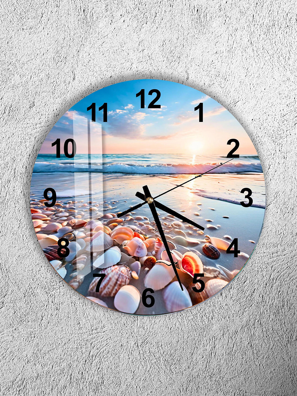 KIRILMAZ CAM DUVAR SAATİ, HEM TABLO HEM SAAT DENİZ KABUĞU SAHİL GÜN BATIMI MANZARA EV OFİS HEDİYESİ