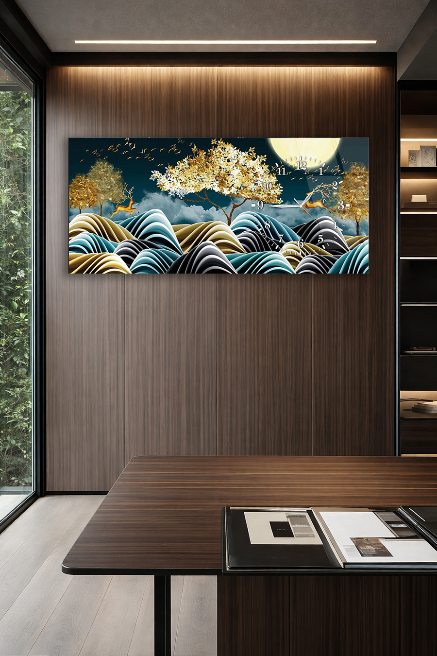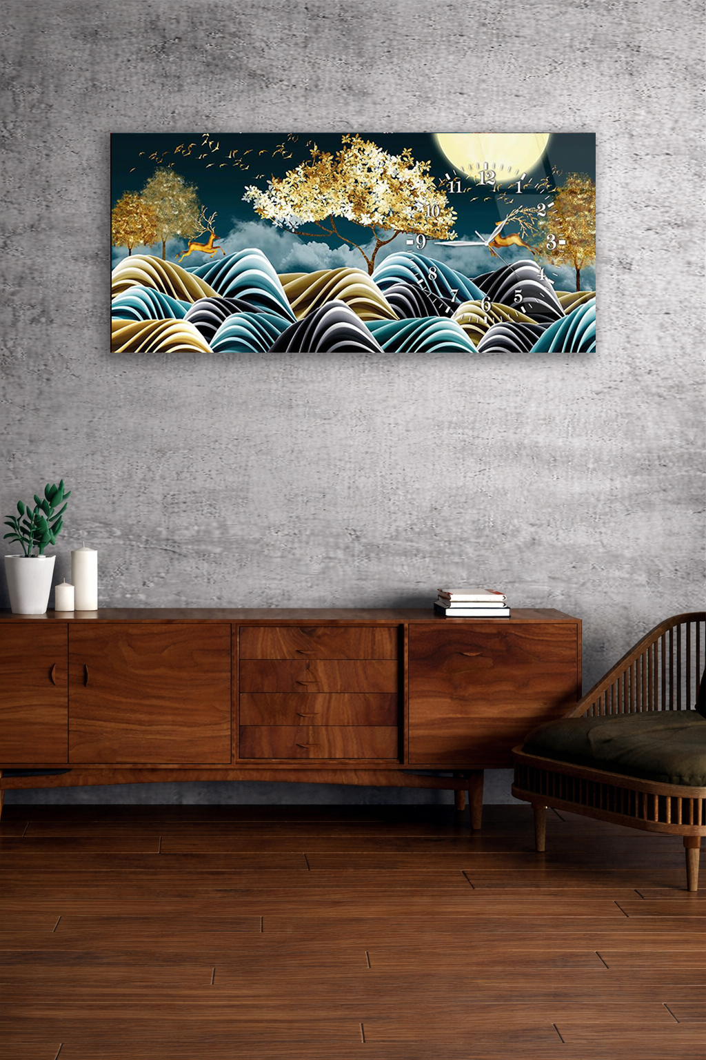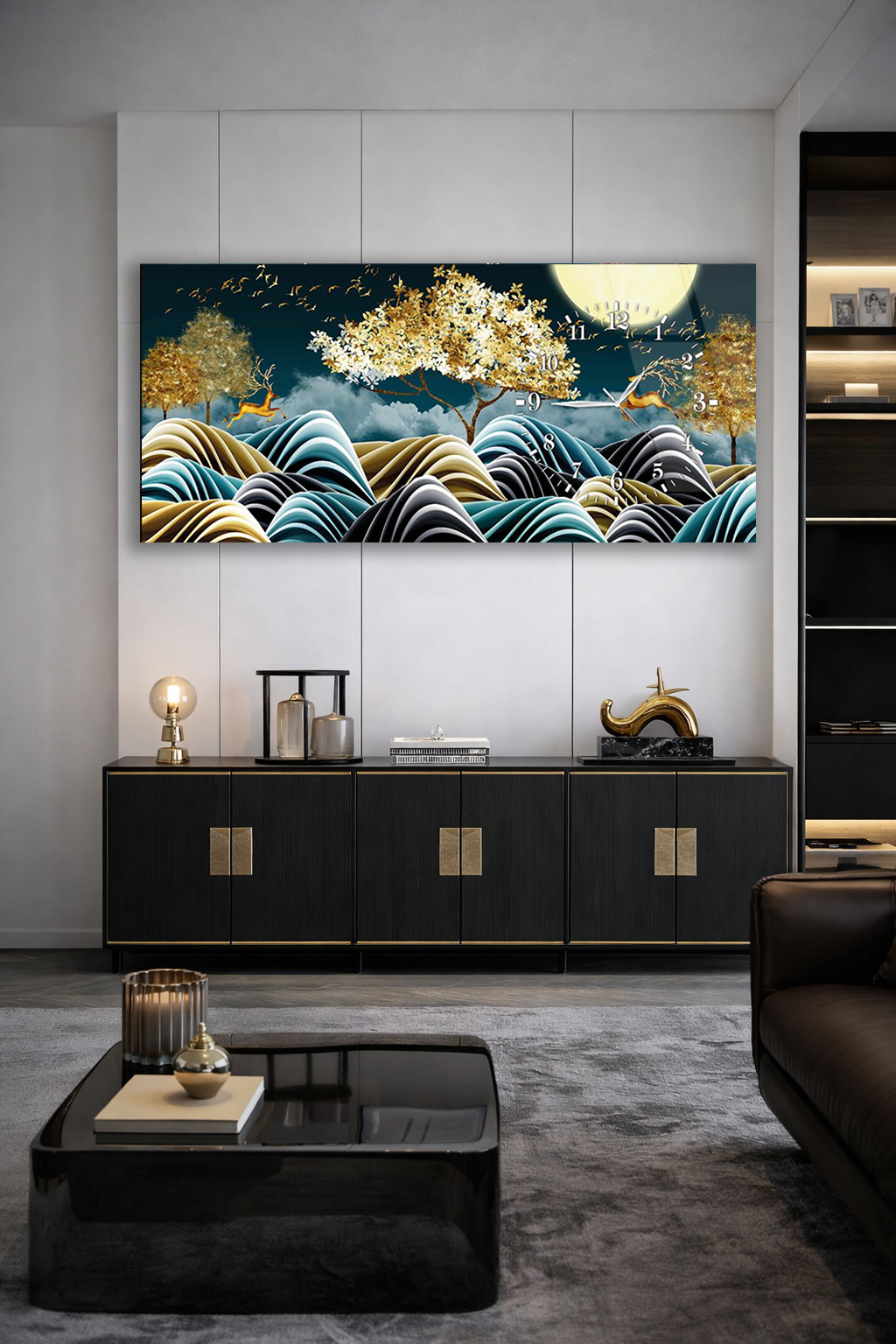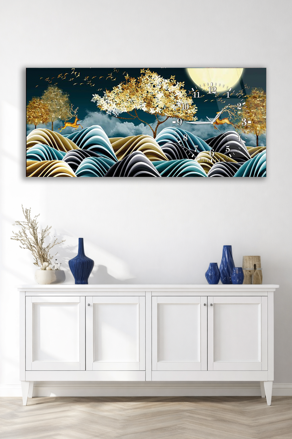 Hem şık bir tablo hem de işlevsel bir saat olarak tasarlanan bu özel ürün, ev ve ofis dekorasyonuna modern bir dokunuş katar.