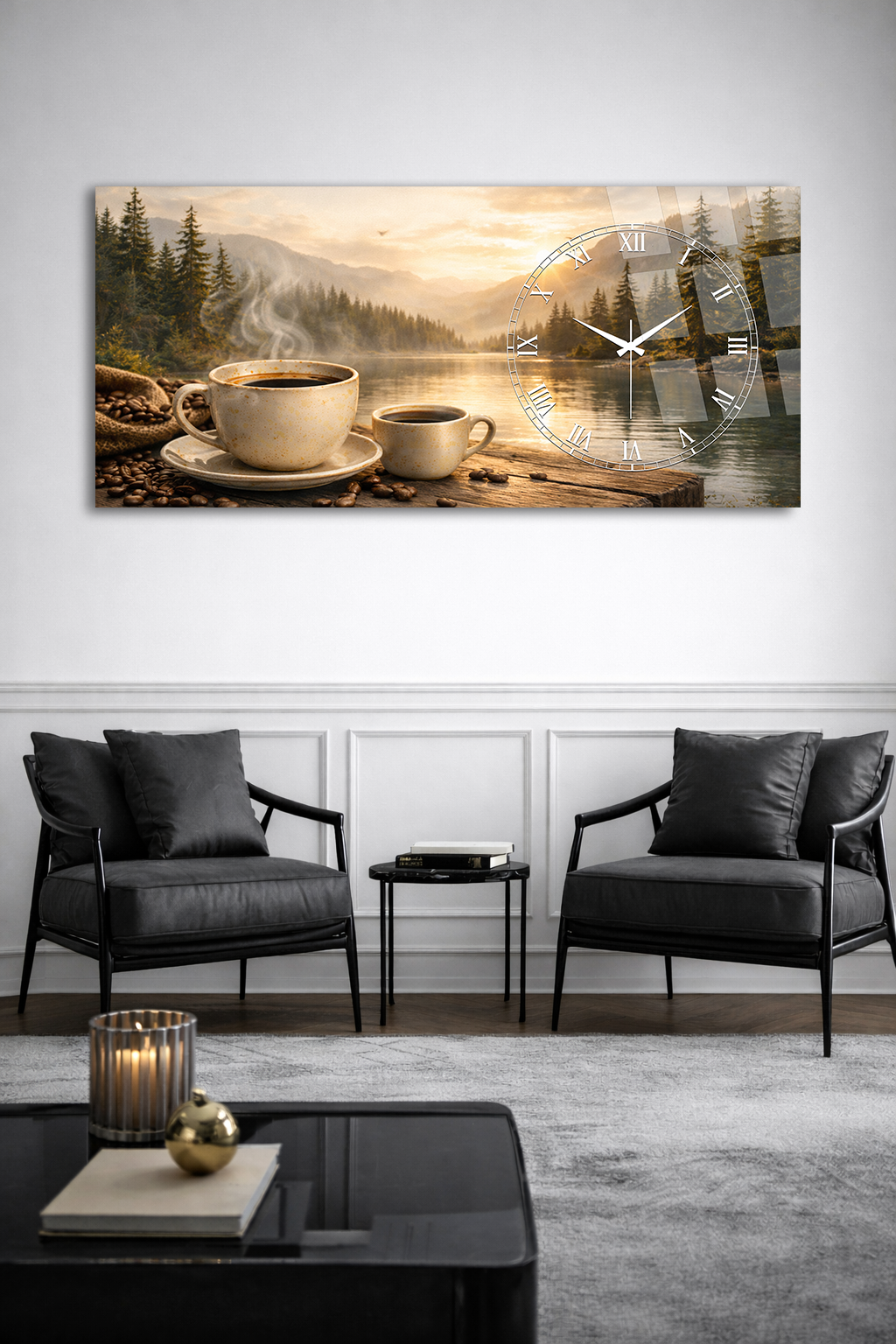 Hem şık bir tablo hem de işlevsel bir saat olarak tasarlanan bu özel ürün, ev ve ofis dekorasyonuna modern bir dokunuş katar.