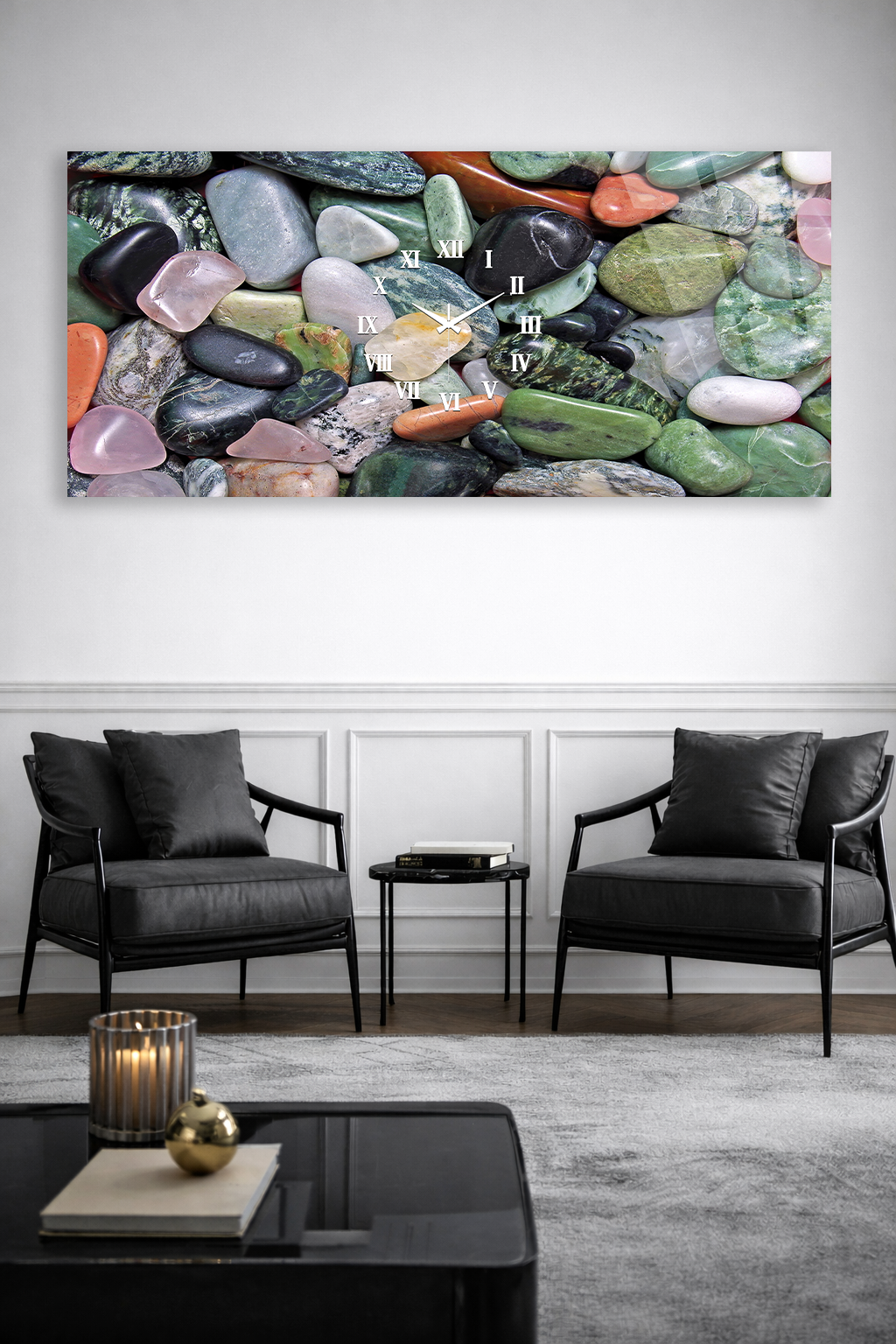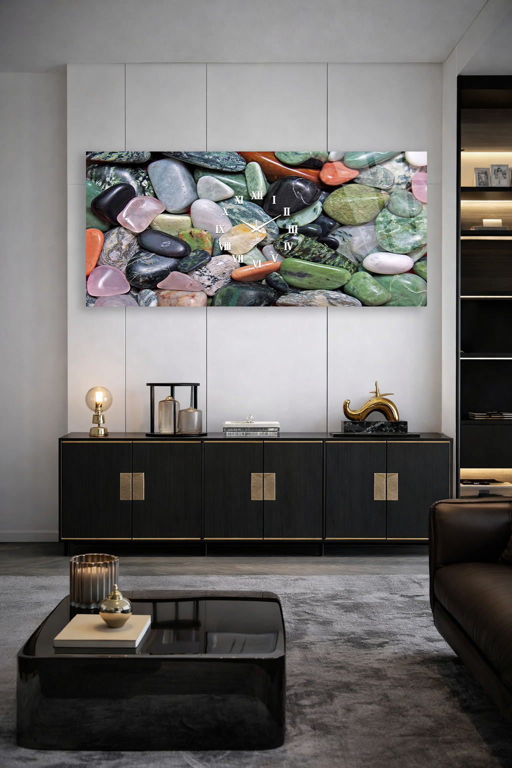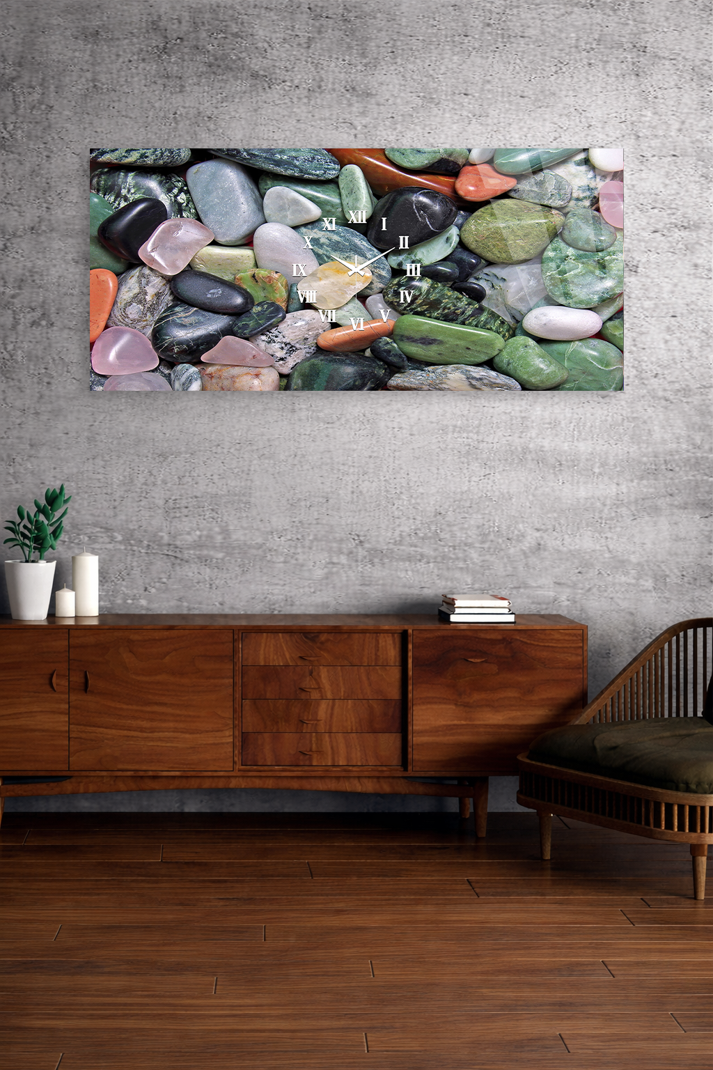 KIRILMAZ CAM DUVAR SAATİ , HEM TABLO HEM SAAT DOĞAL TAŞ DOKULU ZEN TARZI TASARIM EV OFİS HEDİYESİ