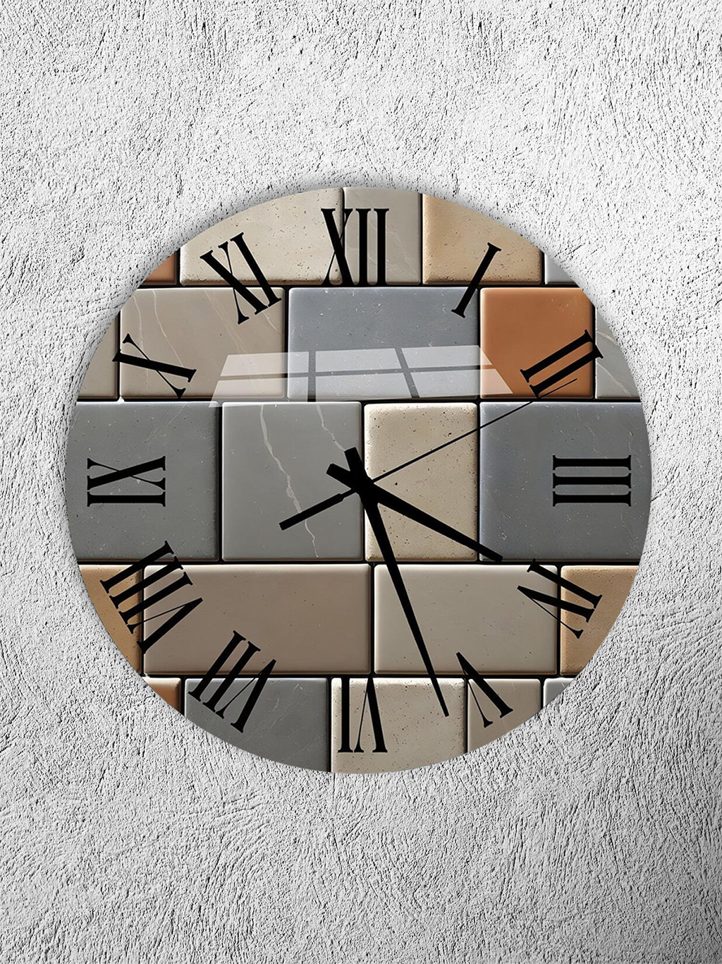 KIRILMAZ CAM DUVAR SAATİ, HEM TABLO HEM SAAT DOĞAL TAŞ SERAMİK KARE DESEN EV OFİS HEDİYESİ