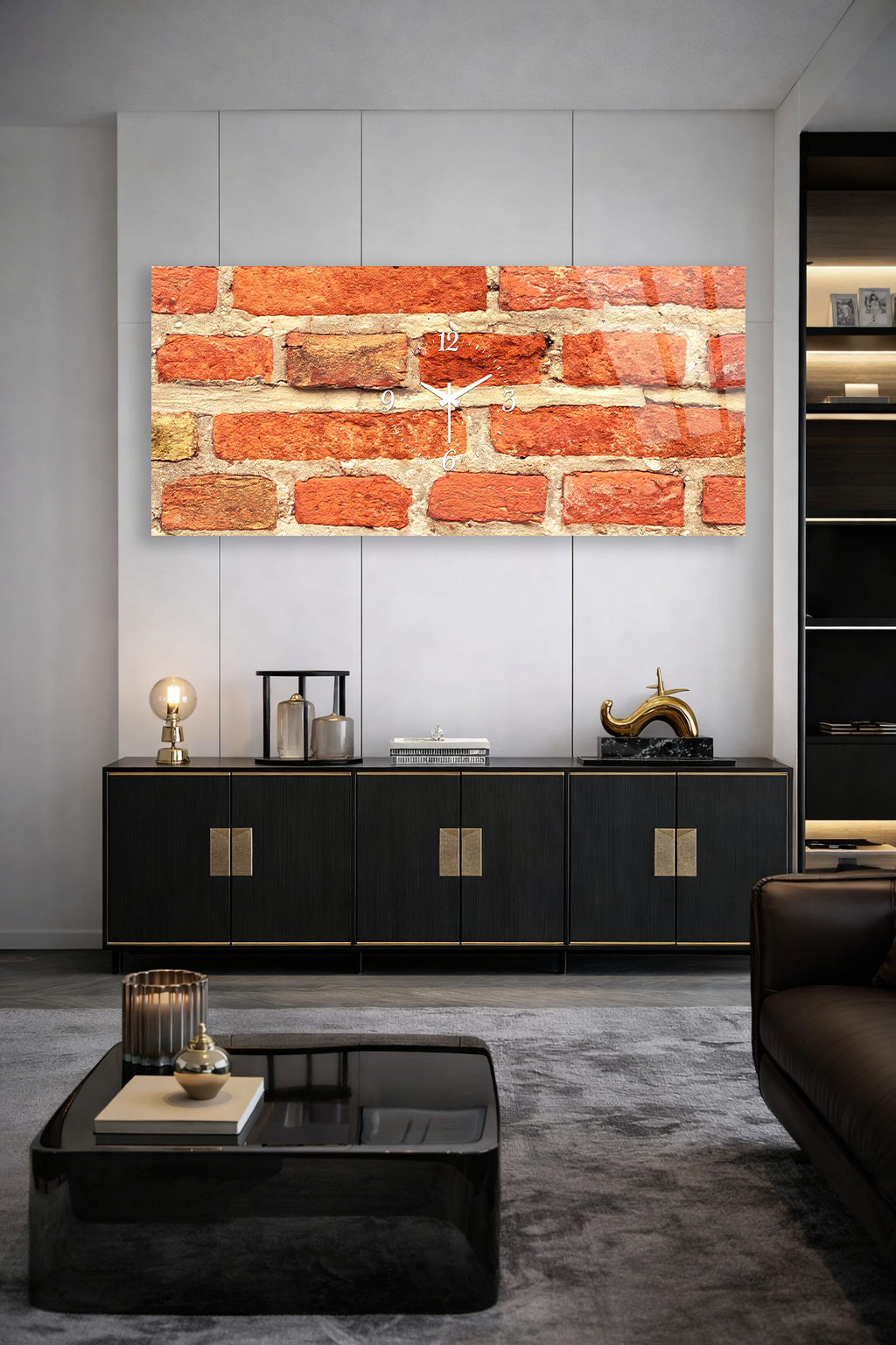 KIRILMAZ CAM DUVAR SAATİ , HEM TABLO HEM SAAT DOĞAL TUĞLA DUVAR DESENLİ DEKOR EV OFİS HEDİYESİ