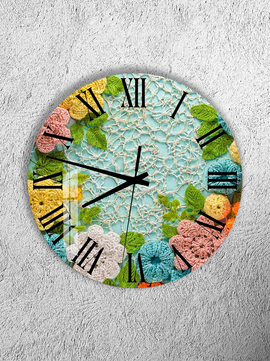 KIRILMAZ CAM DUVAR SAATİ, HEM TABLO HEM SAAT EL ÖRGÜ ÇİÇEK BOHO TASARIM EV OFİS HEDİYESİ
