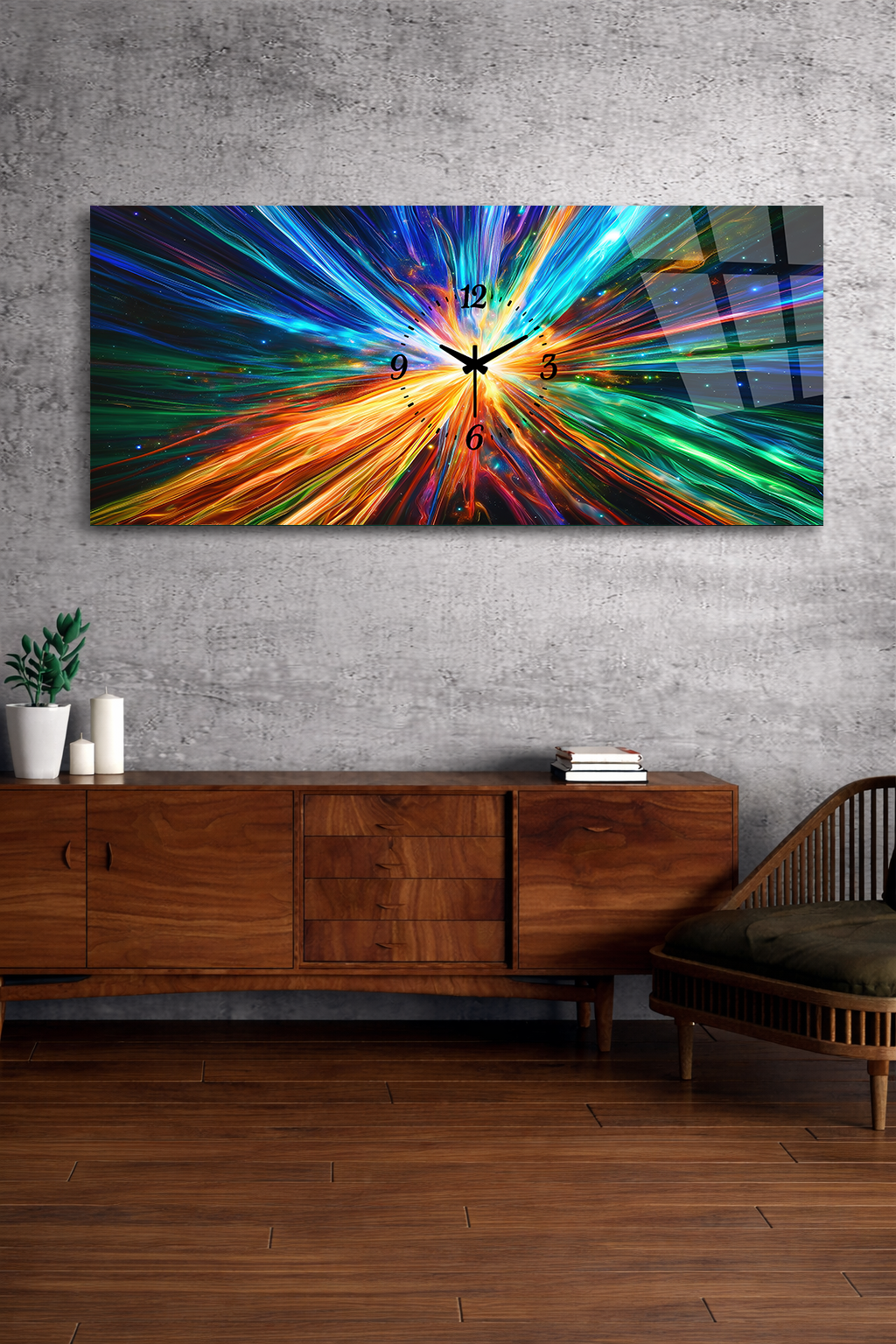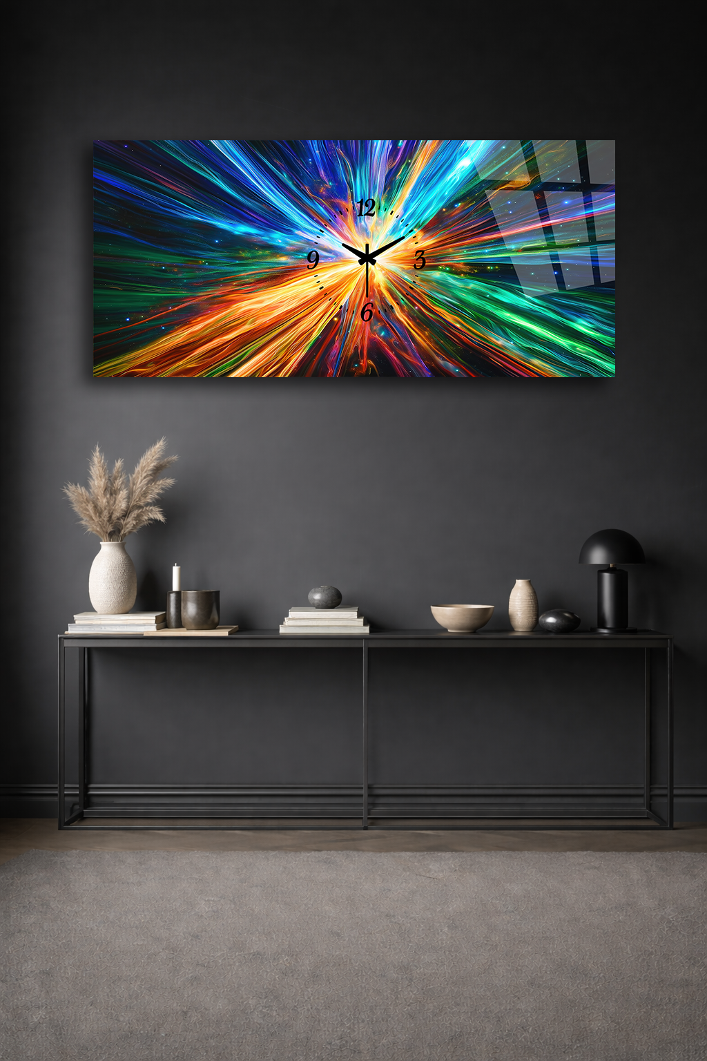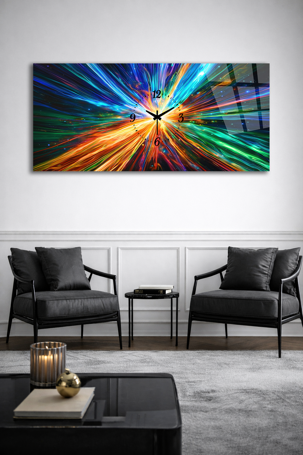 Hem şık bir tablo hem de işlevsel bir saat olarak tasarlanan bu özel ürün, ev ve ofis dekorasyonuna modern bir dokunuş katar.
