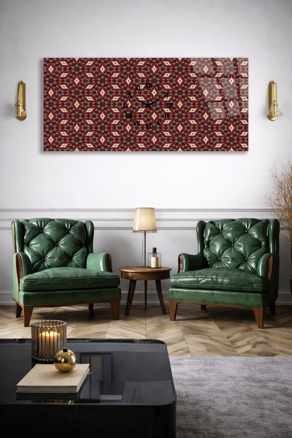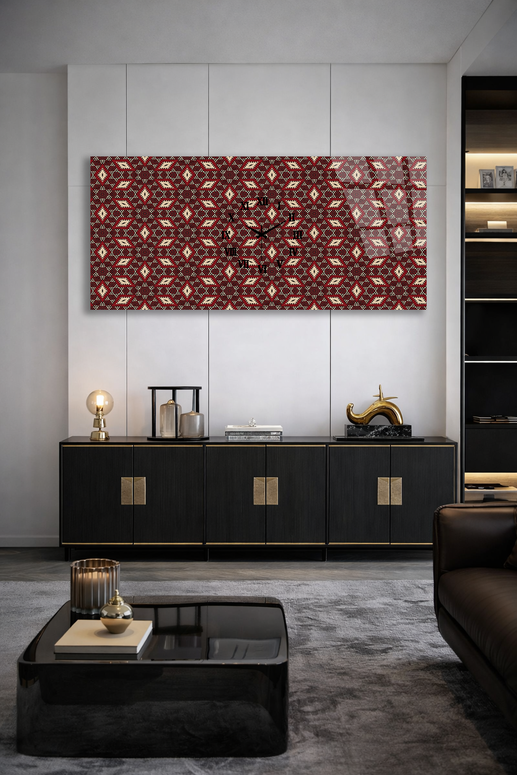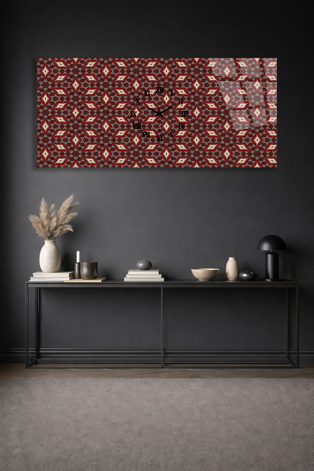 KIRILMAZ CAM DUVAR SAATİ , HEM TABLO HEM SAAT GELENEKSEL DESEN ETNİK TASARIM EV OFİS HEDİYESİ