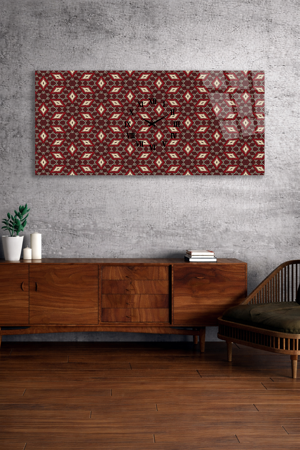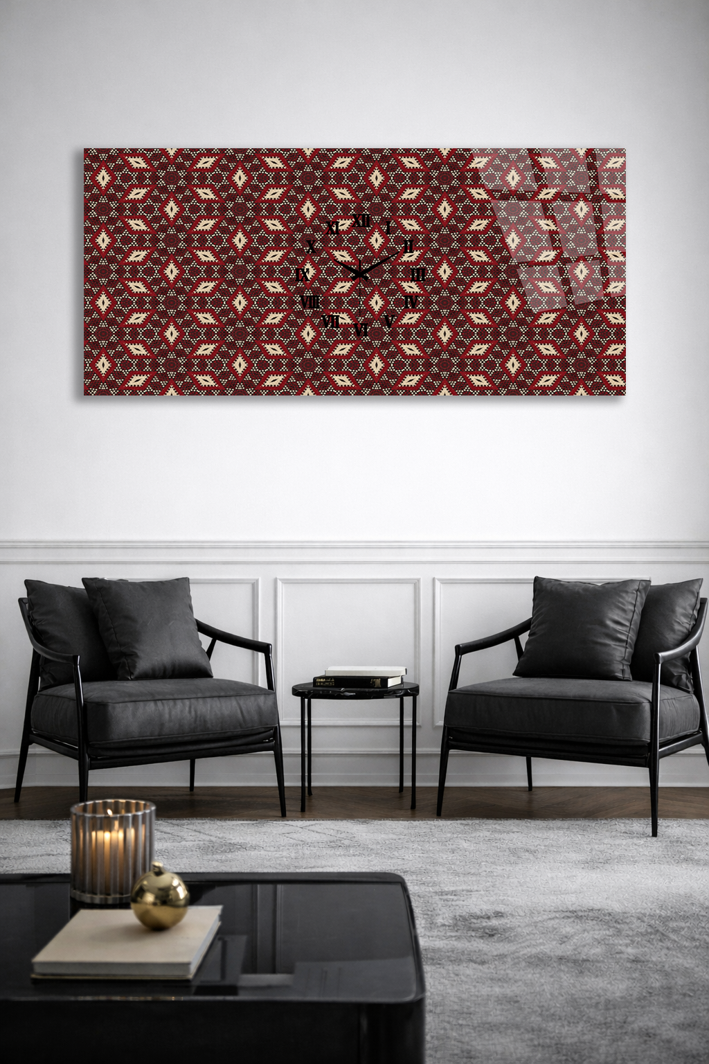 KIRILMAZ CAM DUVAR SAATİ , HEM TABLO HEM SAAT GELENEKSEL DESEN ETNİK TASARIM EV OFİS HEDİYESİ