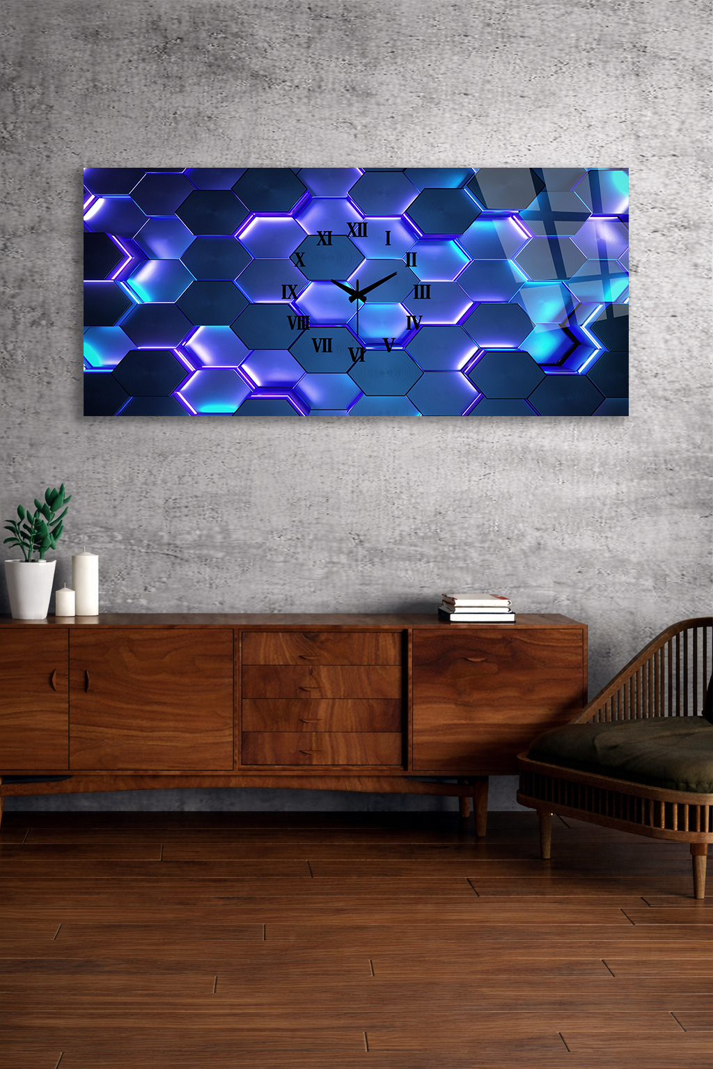 KIRILMAZ CAM DUVAR SAATİ , HEM TABLO HEM SAAT GEOMETRİK ALTIGEN MODERN DESEN EV OFİS HEDİYESİ