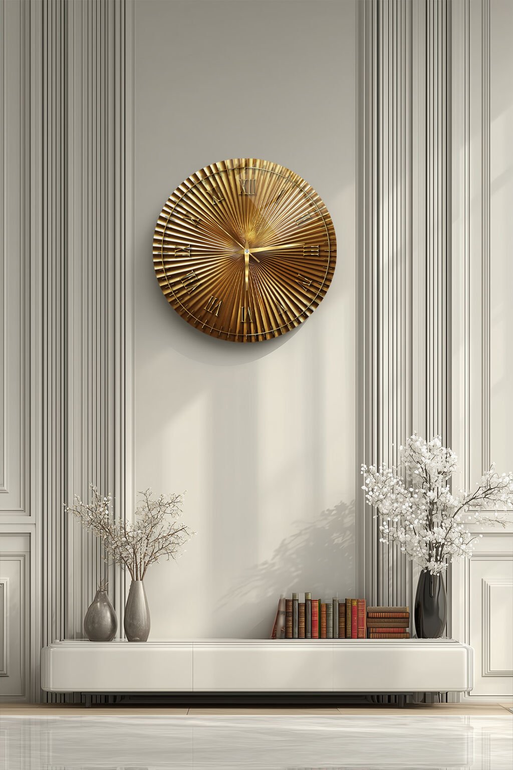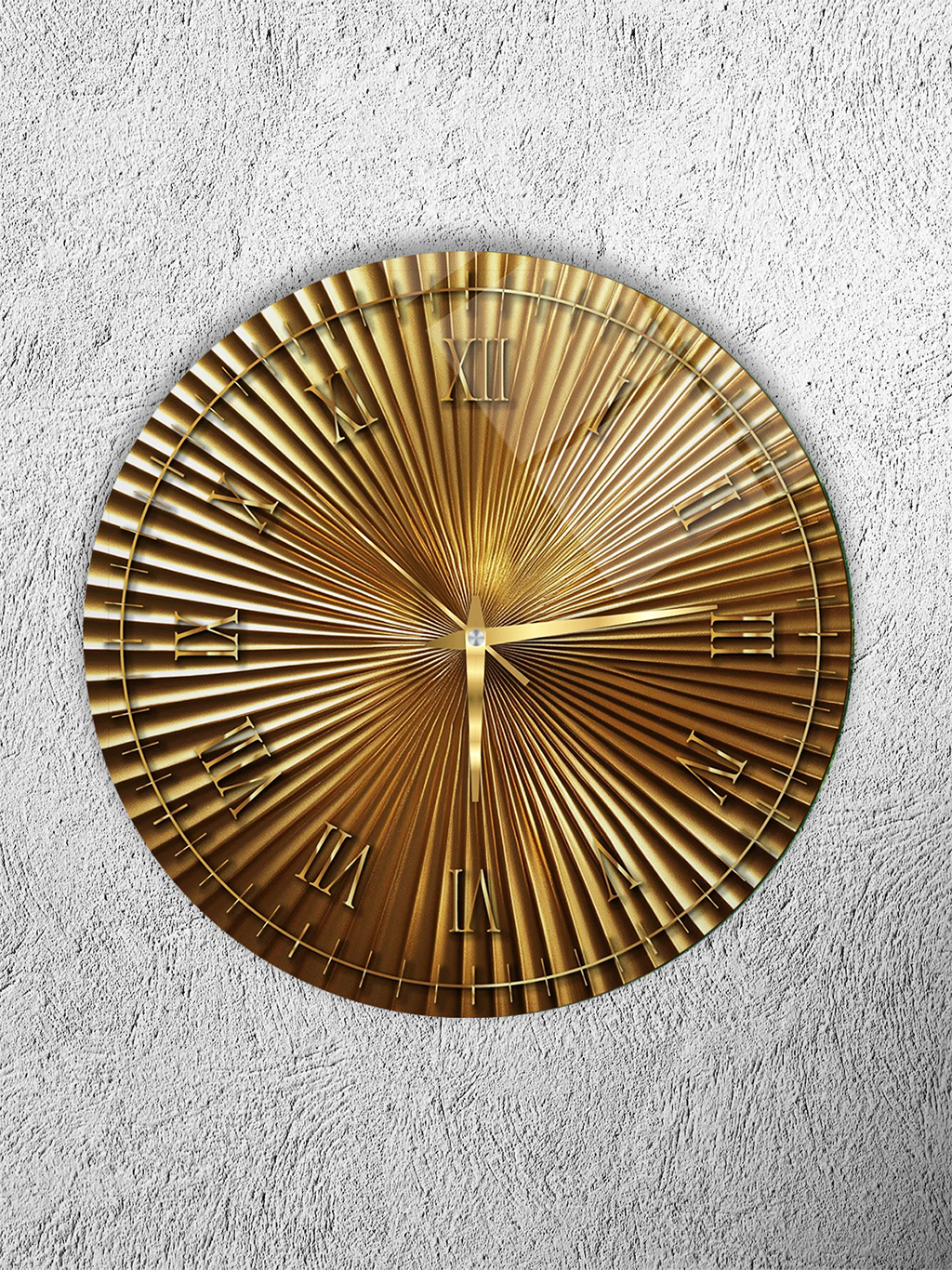 KIRILMAZ CAM DUVAR SAATİ, HEM TABLO HEM SAAT GOLD GÜNEŞ IŞINLI LÜKS TASARIM ROMA RAKAMLI EV OFİS HEDİYESİ
