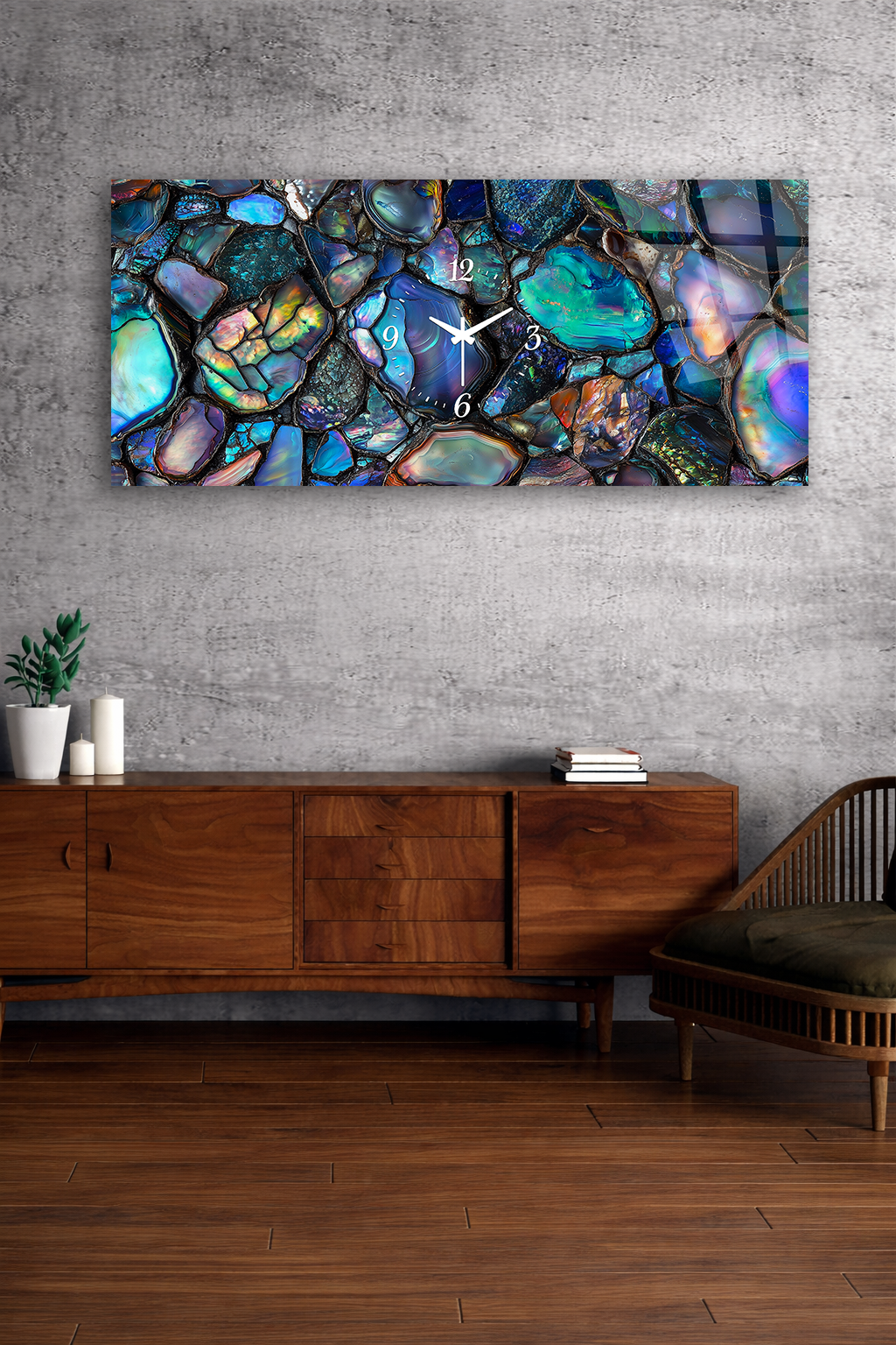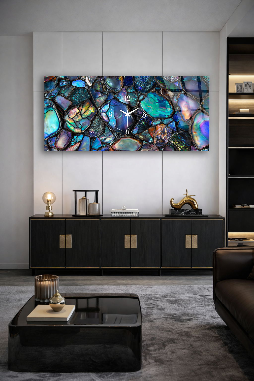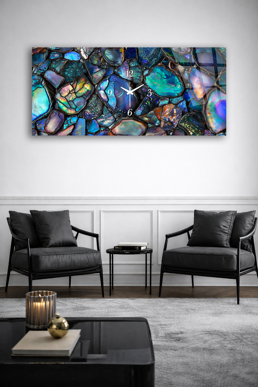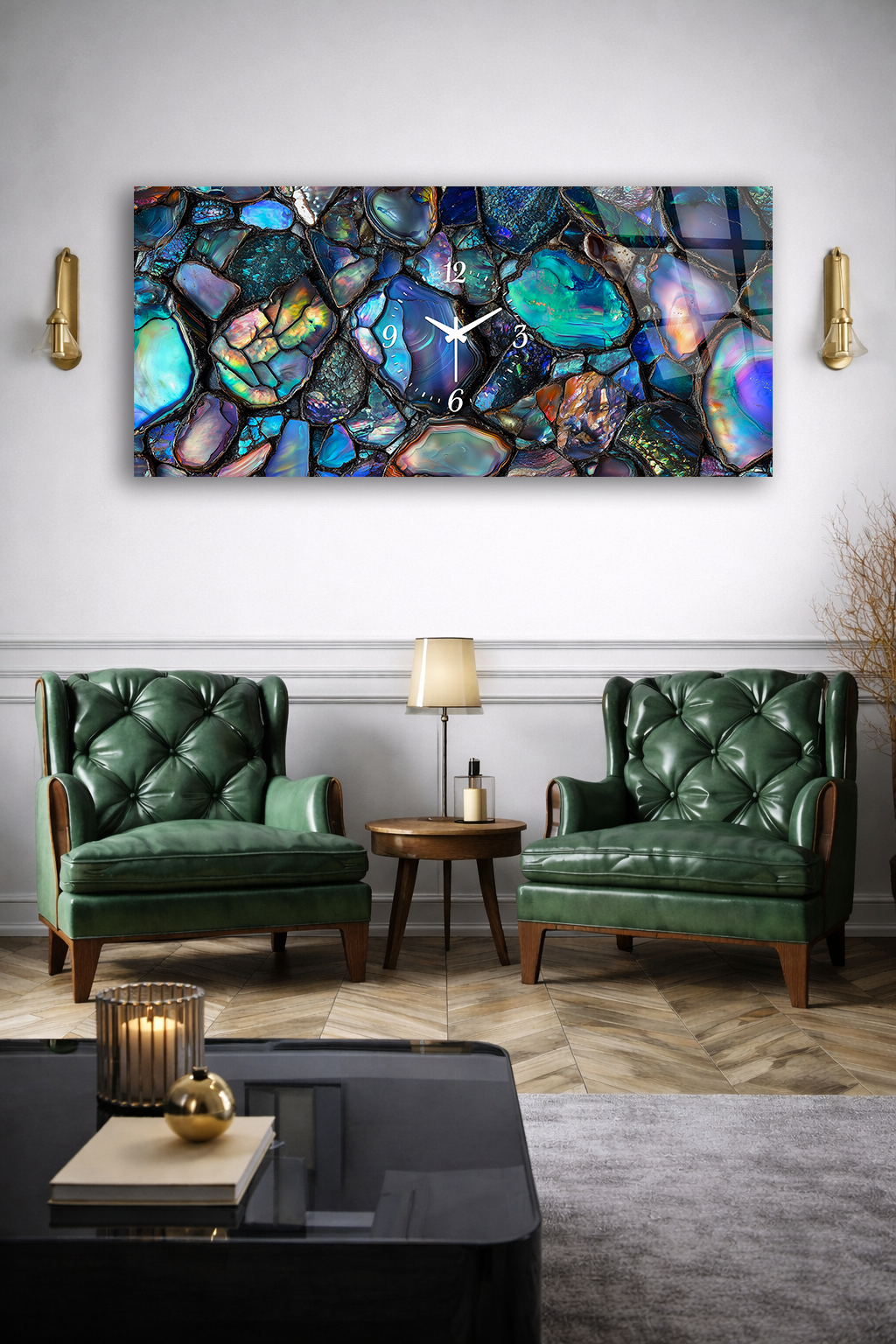 KIRILMAZ CAM DUVAR SAATİ , HEM TABLO HEM SAAT İRİDESAN MOZAİK TAŞ EV OFİS HEDİYESİ