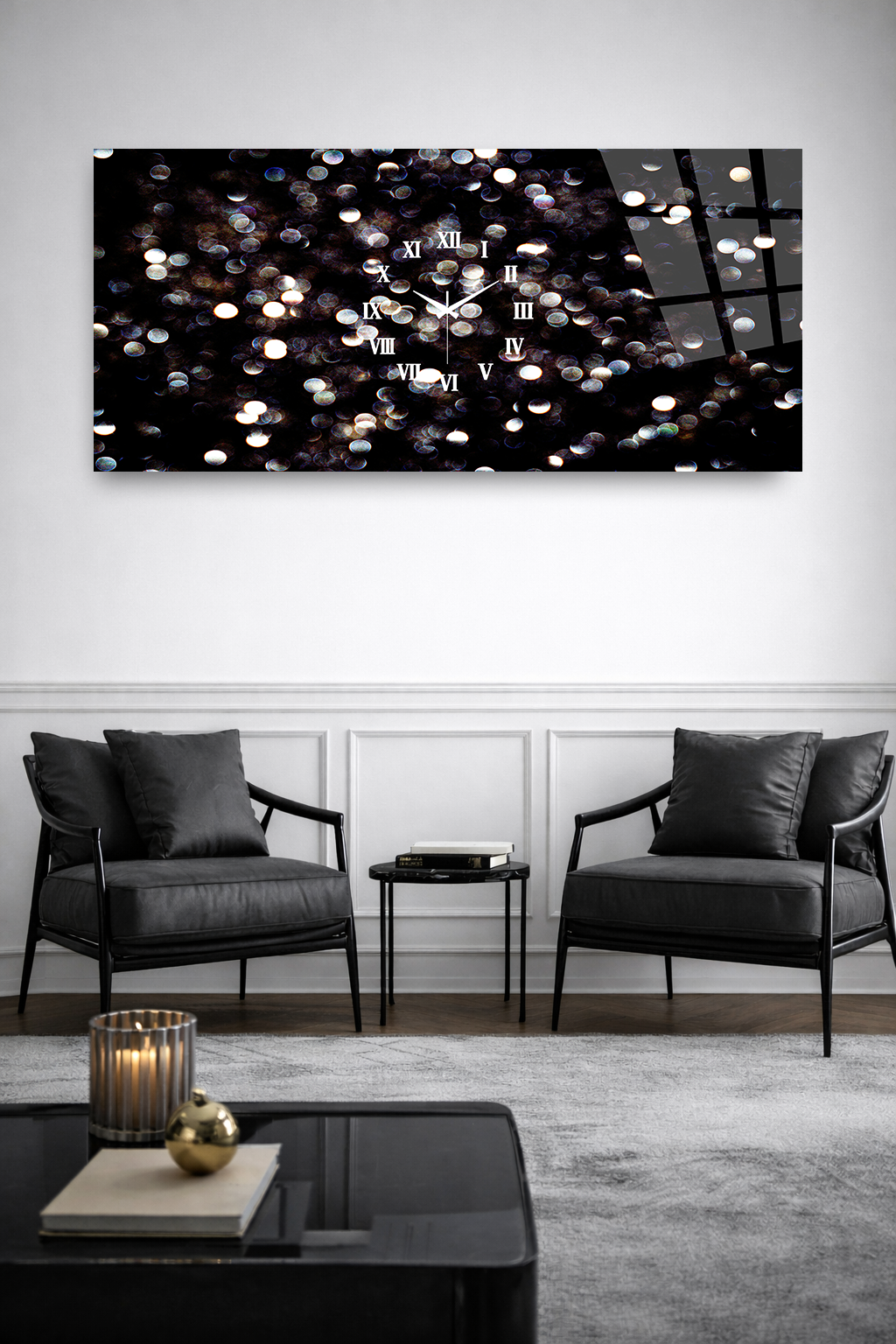KIRILMAZ CAM DUVAR SAATİ , HEM TABLO HEM SAAT IŞIKLI BOKEH SOYUT DESEN EV OFİS HEDİYESİ