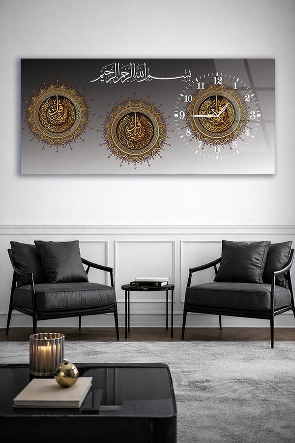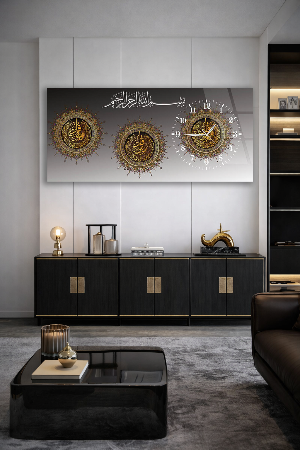 KIRILMAZ CAM DUVAR SAATİ , HEM TABLO HEM SAAT İSLAMİ HAT SANATI VE MANEVİ TASARIM EV OFİS HEDİYESİ