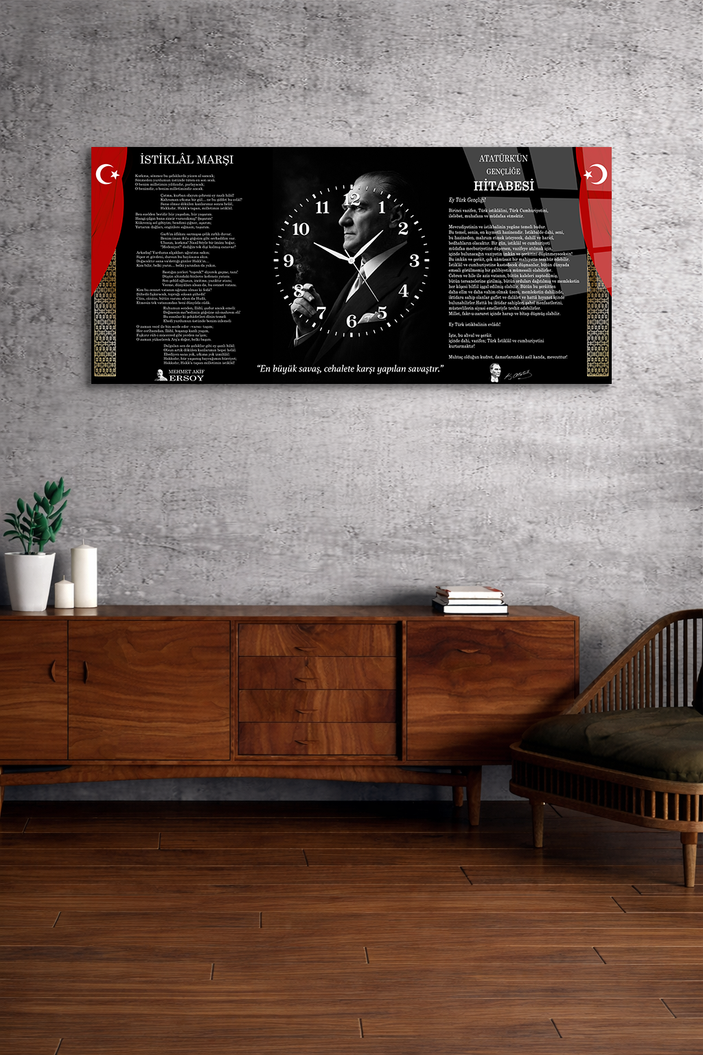 KIRILMAZ CAM DUVAR SAATİ , HEM TABLO HEM SAAT İSTİKLAL MARŞI GENÇLİĞE HİTABE EV OFİS HEDİYESİ