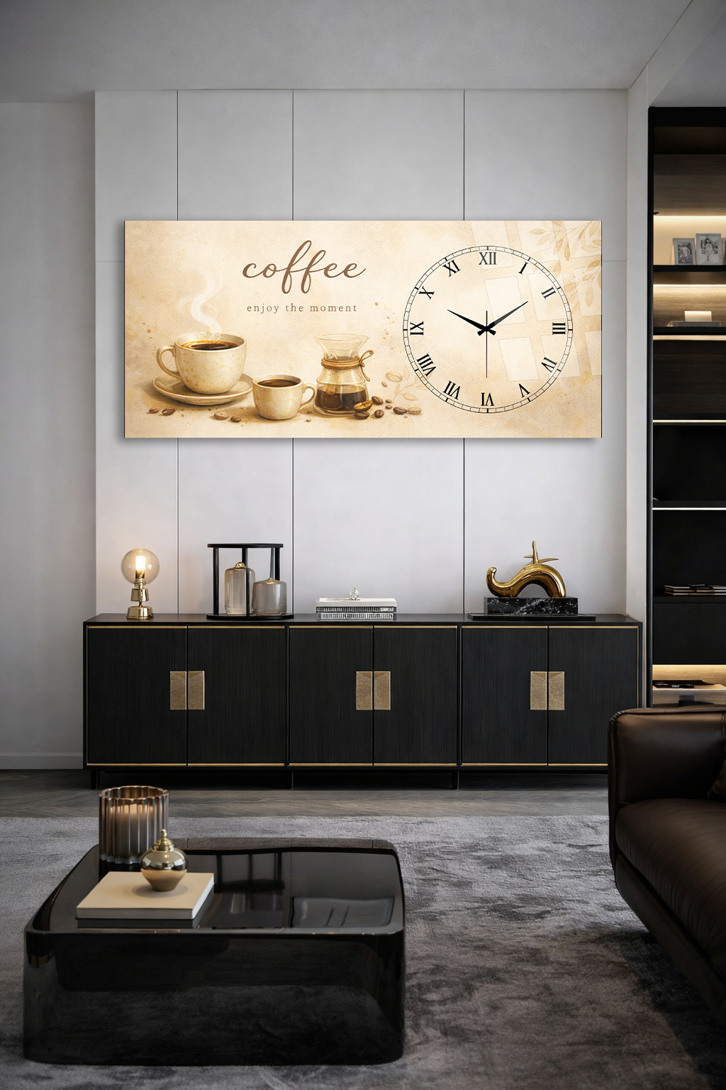 KIRILMAZ CAM DUVAR SAATİ , HEM TABLO HEM SAAT KAHVE TEMALI ROMA RAKAMLI TASARIM EV OFİS HEDİYESİ