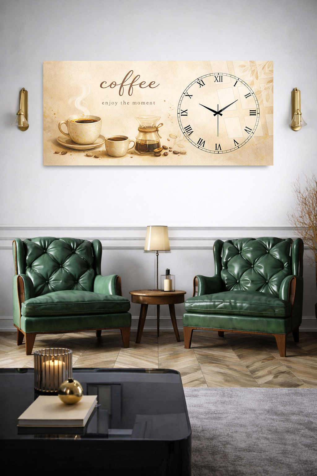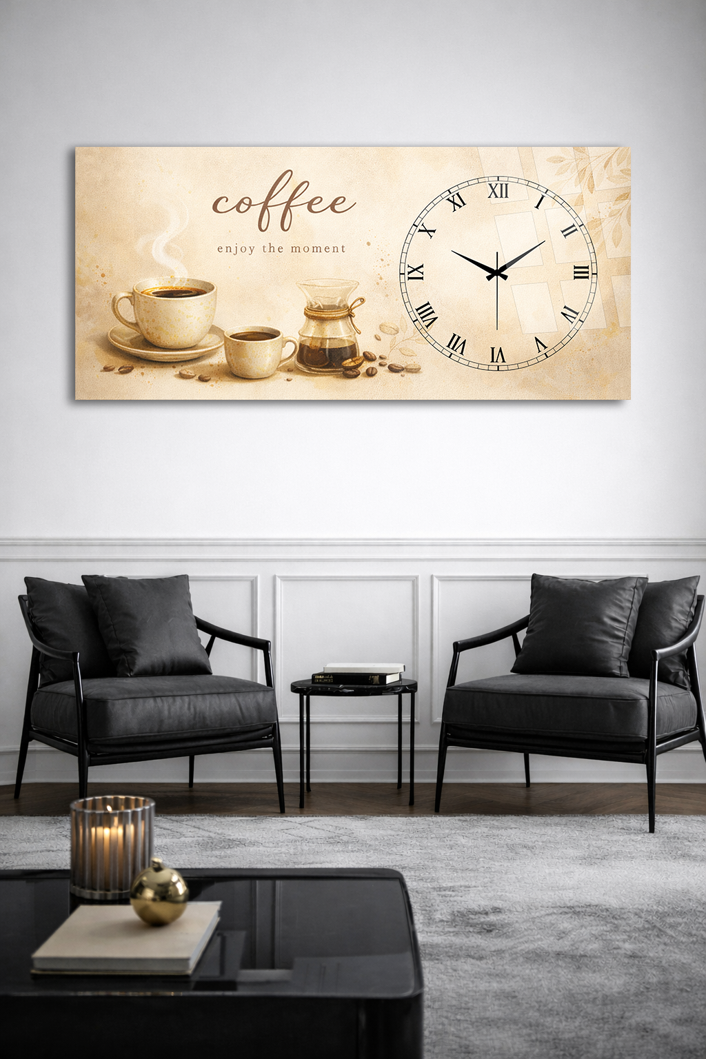 Hem şık bir tablo hem de işlevsel bir saat olarak tasarlanan bu özel ürün, ev ve ofis dekorasyonuna modern bir dokunuş katar.
