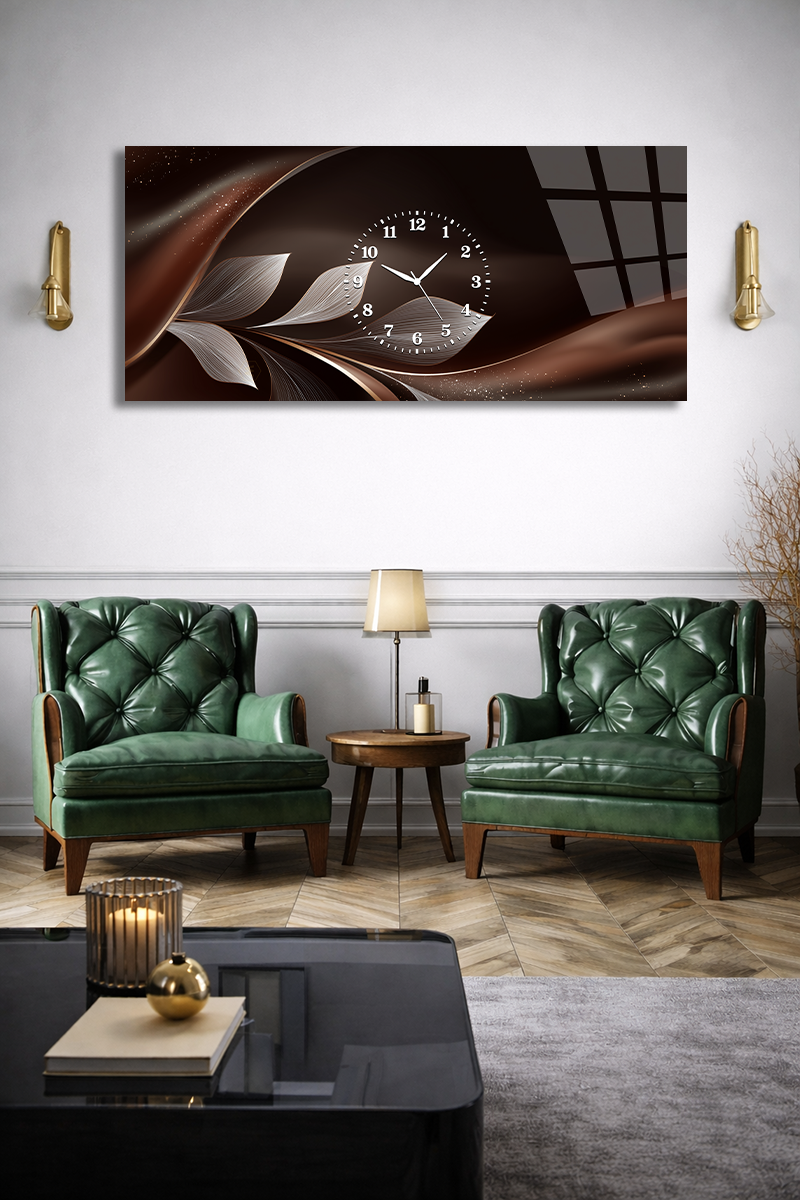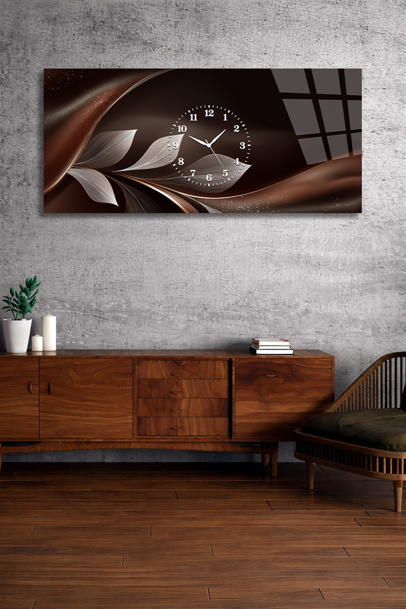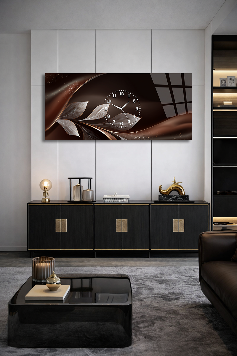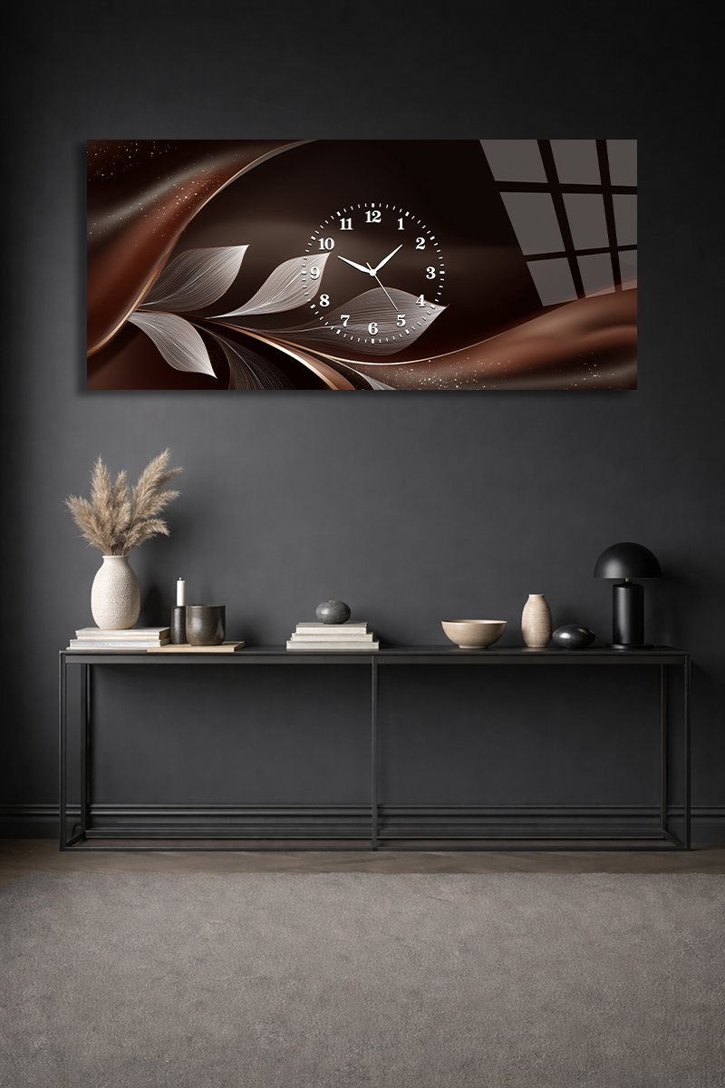 KIRILMAZ CAM DUVAR SAATİ , HEM TABLO HEM SAAT KAHVERENGİ SOYUT DALGA ŞIK DEKOR EV OFİS HEDİYESİ