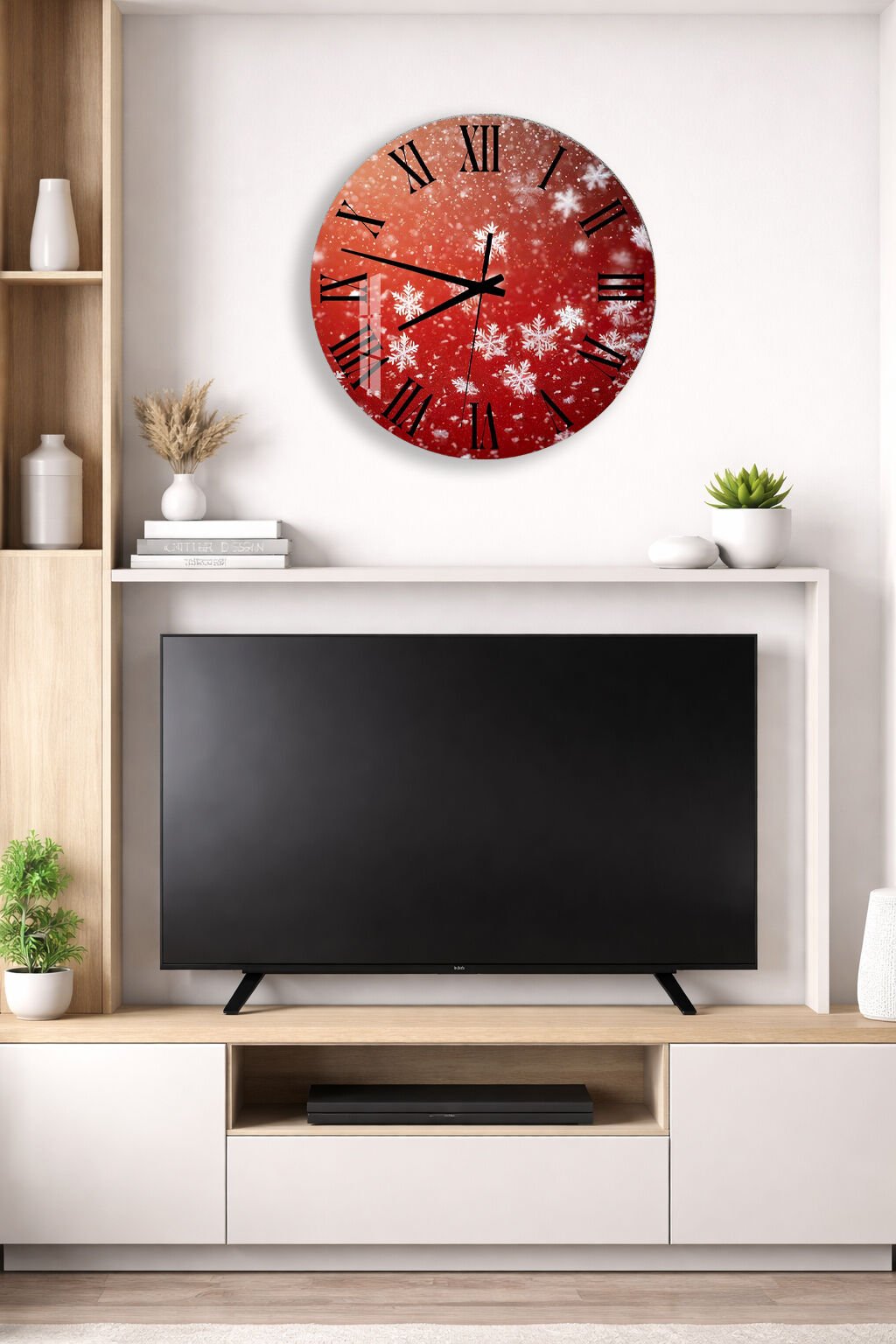 KIRILMAZ CAM DUVAR SAATİ, HEM TABLO HEM SAAT KAR TANESİ KIŞ TEMASI EV OFİS HEDİYESİ