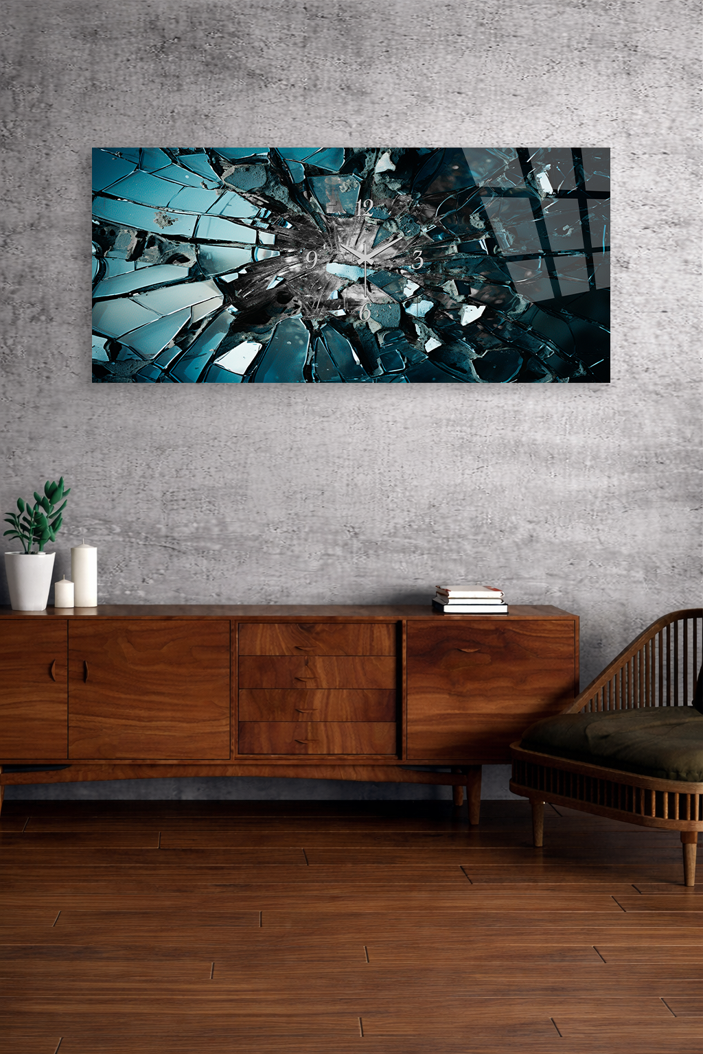 KIRILMAZ CAM DUVAR SAATİ , HEM TABLO HEM SAAT KIRIK CAM SANATSAL DUVAR SAATİ EV OFİS HEDİYESİ