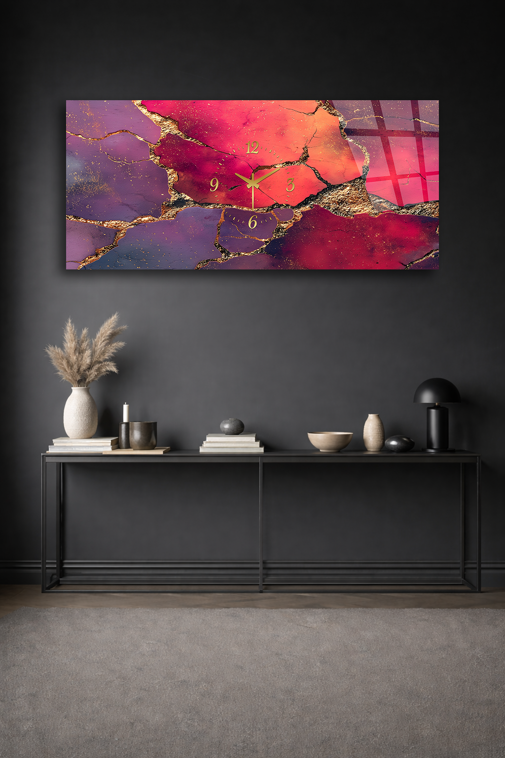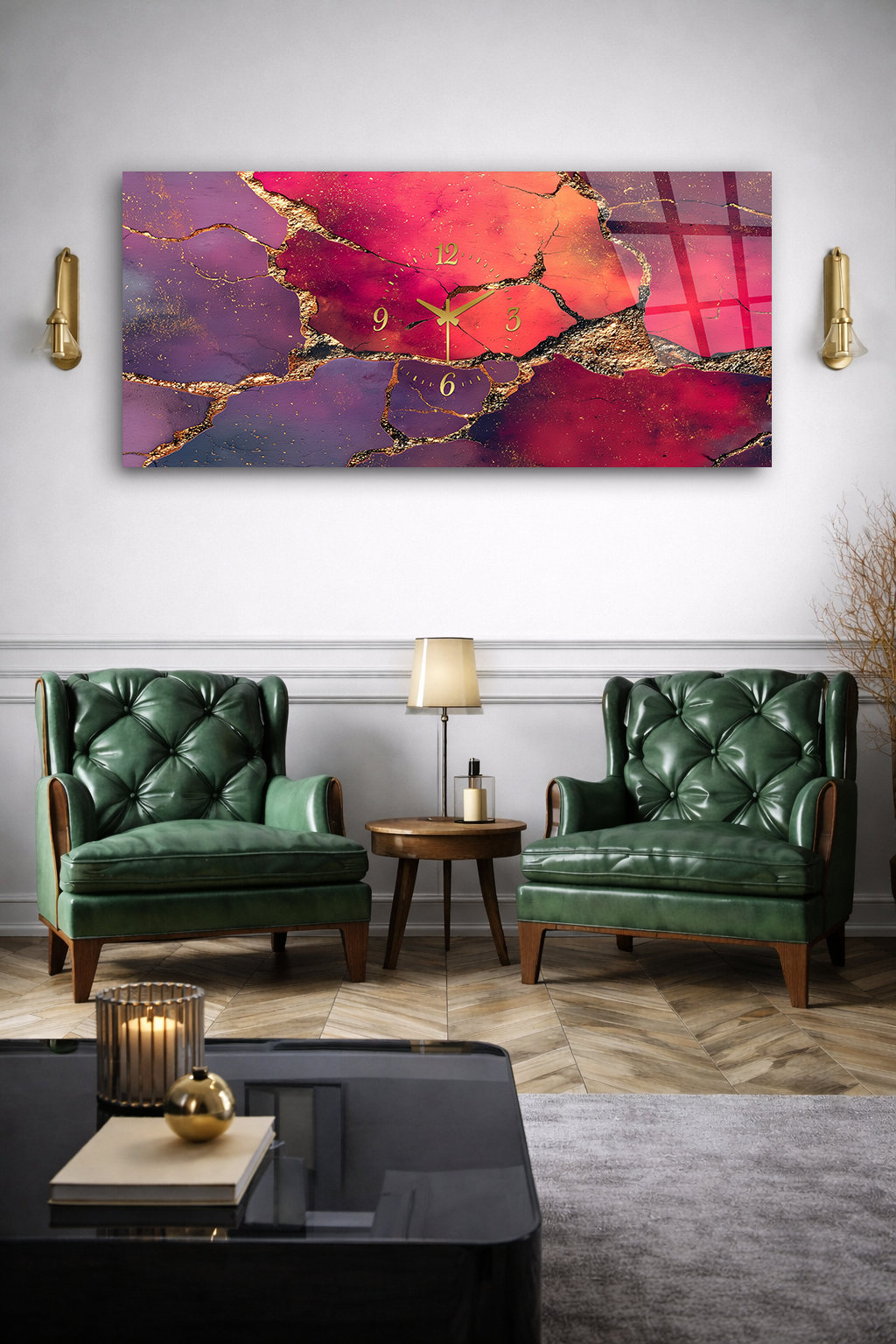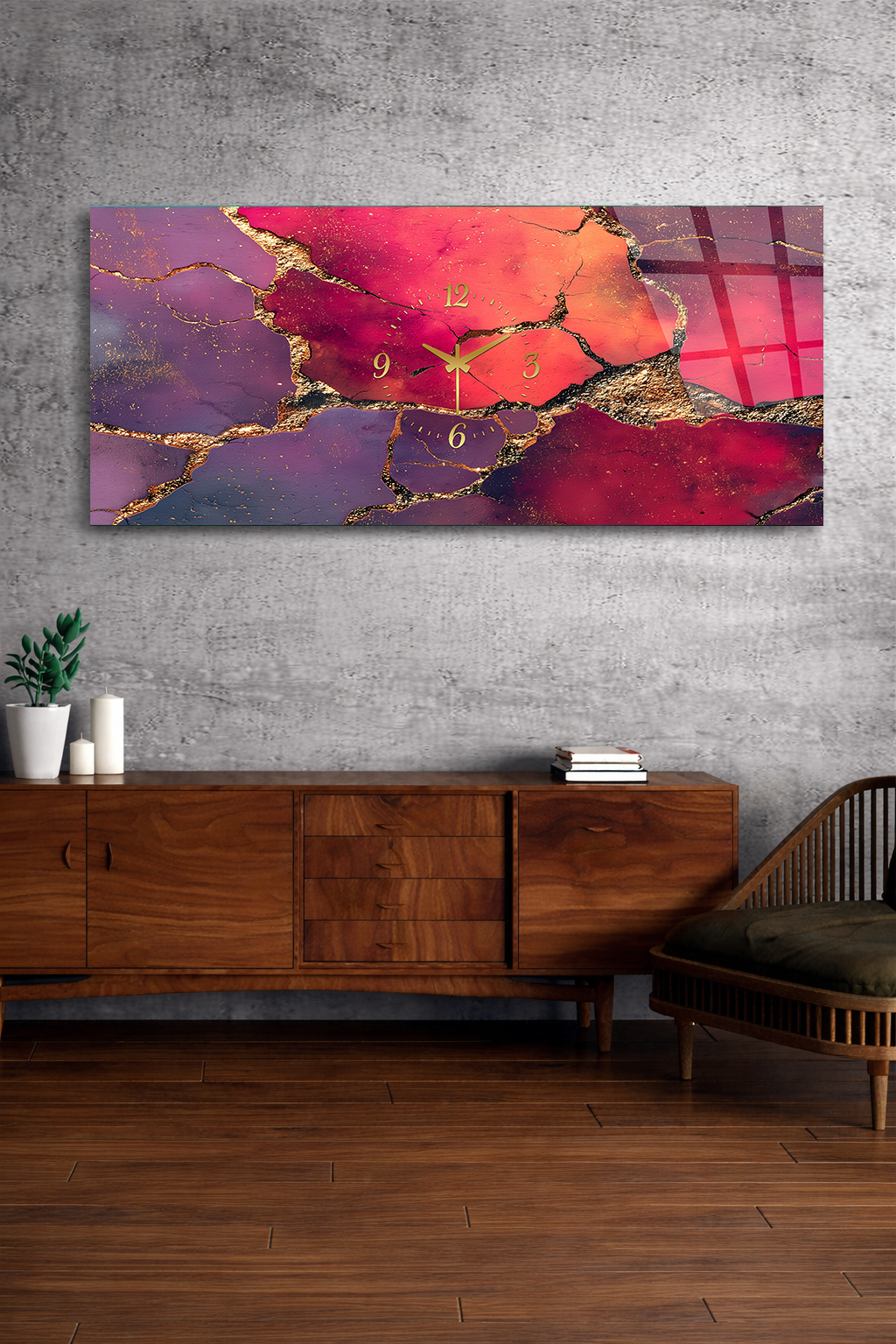 KIRILMAZ CAM DUVAR SAATİ , HEM TABLO HEM SAAT KIRMIZI ALTIN MERMER DESEN EV OFİS HEDİYESİ