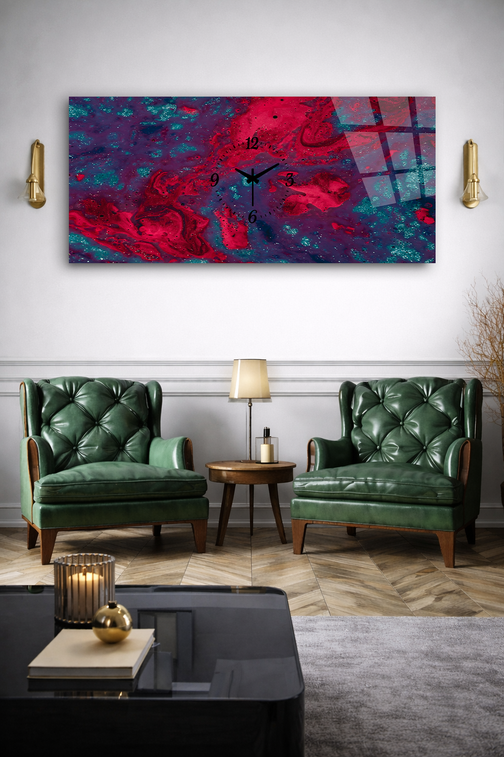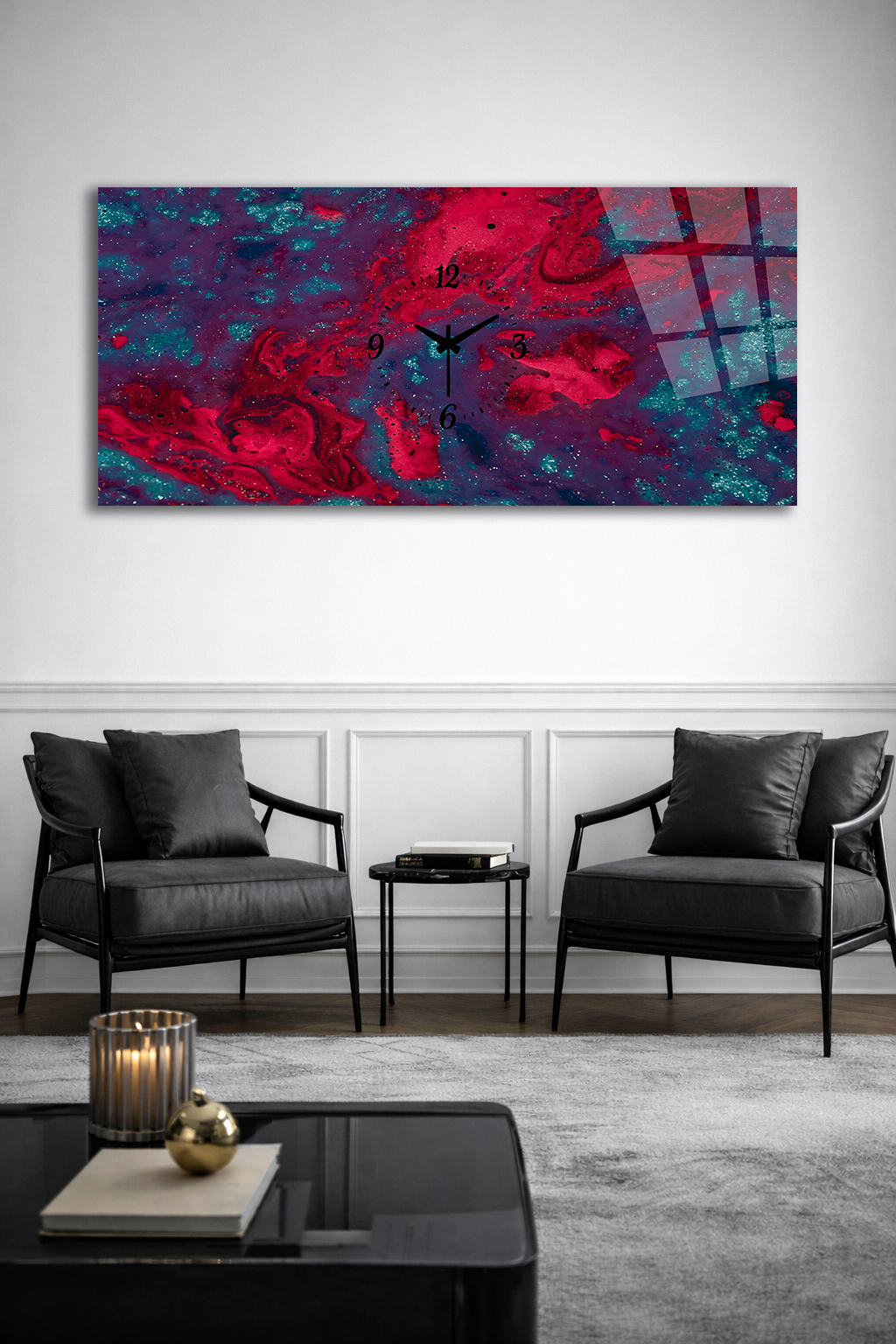 Hem şık bir tablo hem de işlevsel bir saat olarak tasarlanan bu özel ürün, ev ve ofis dekorasyonuna modern bir dokunuş katar.