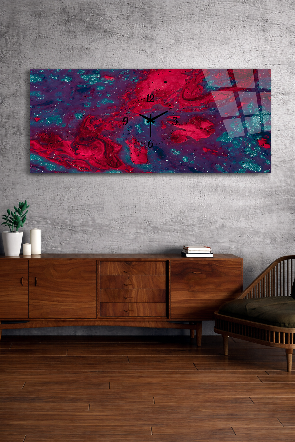Kırılmaz cam duvar saati, dekoratif tablo görünümü ile zamanı estetikle buluşturur.