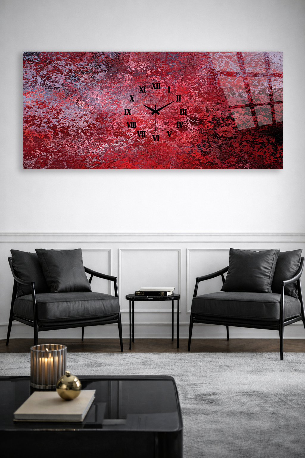 Hem şık bir tablo hem de işlevsel bir saat olarak tasarlanan bu özel ürün, ev ve ofis dekorasyonuna modern bir dokunuş katar.