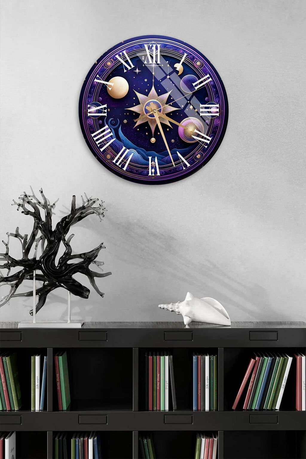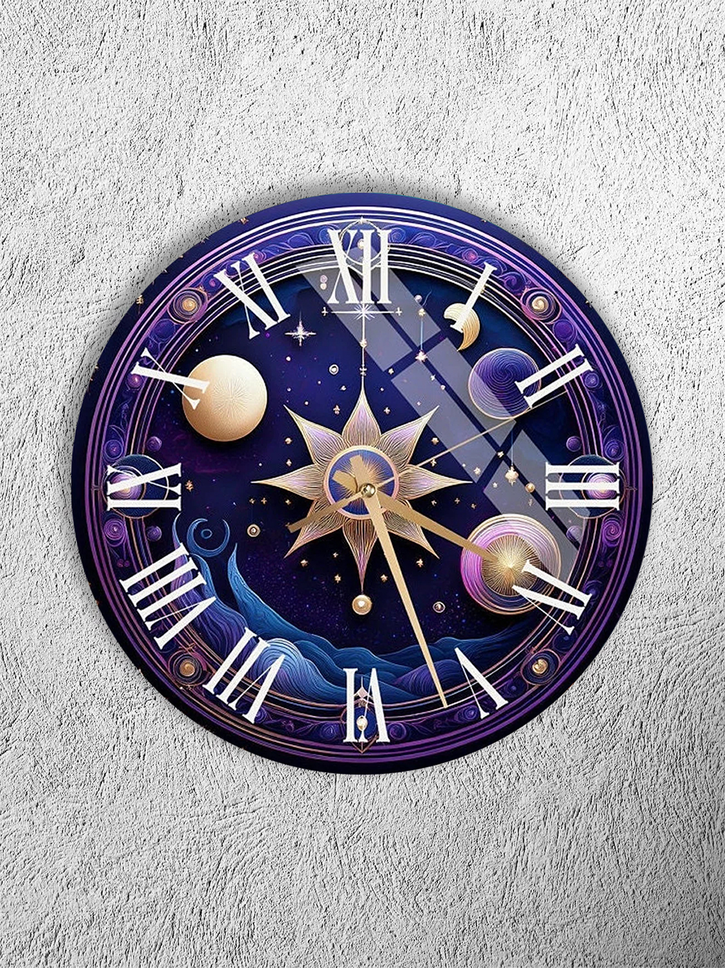 KIRILMAZ CAM DUVAR SAATİ, HEM TABLO HEM SAAT KOZMİK GEZEGEN VE YILDIZ TEMALI LÜKS TASARIM EV OFİS HEDİYESİ