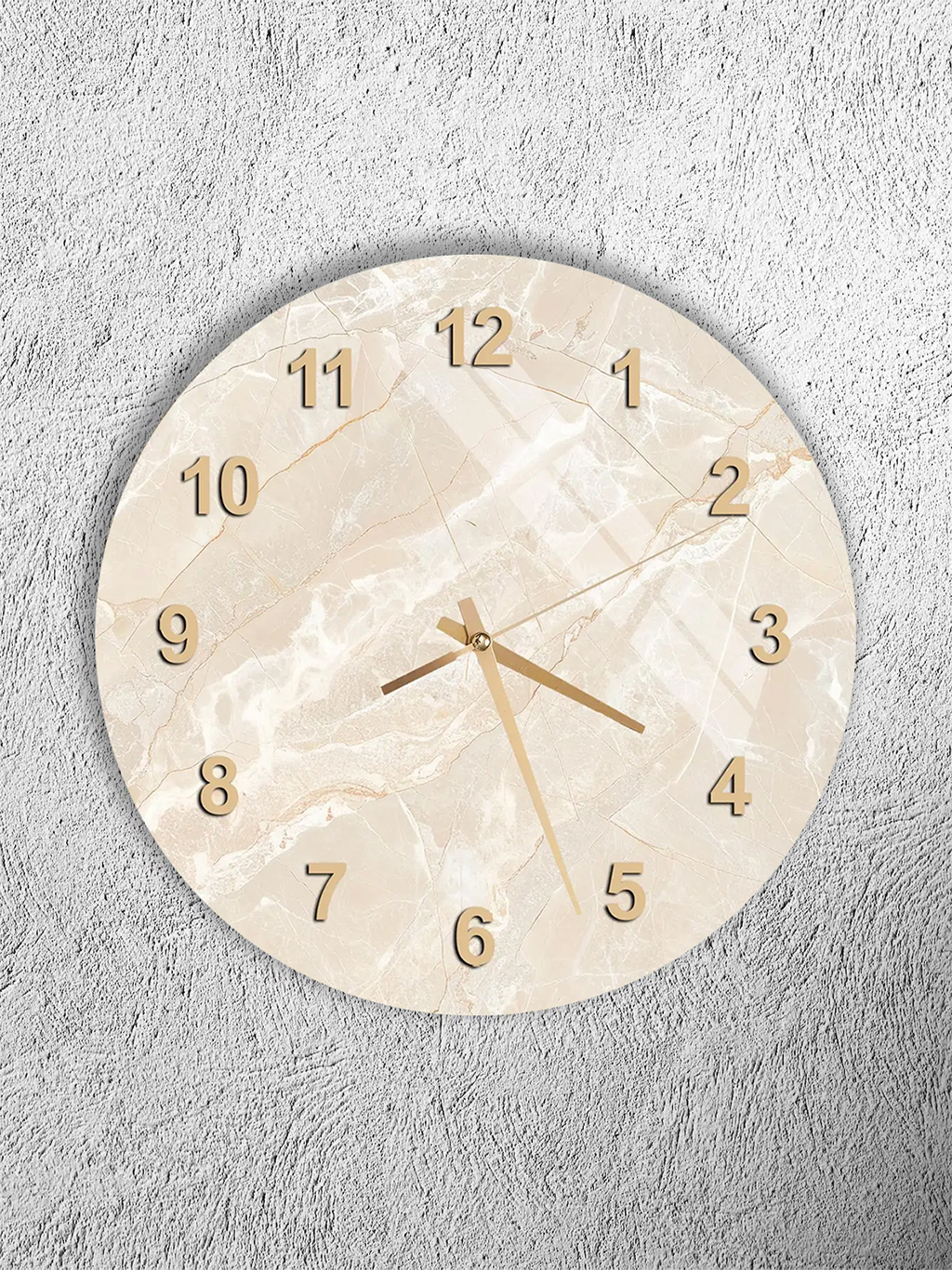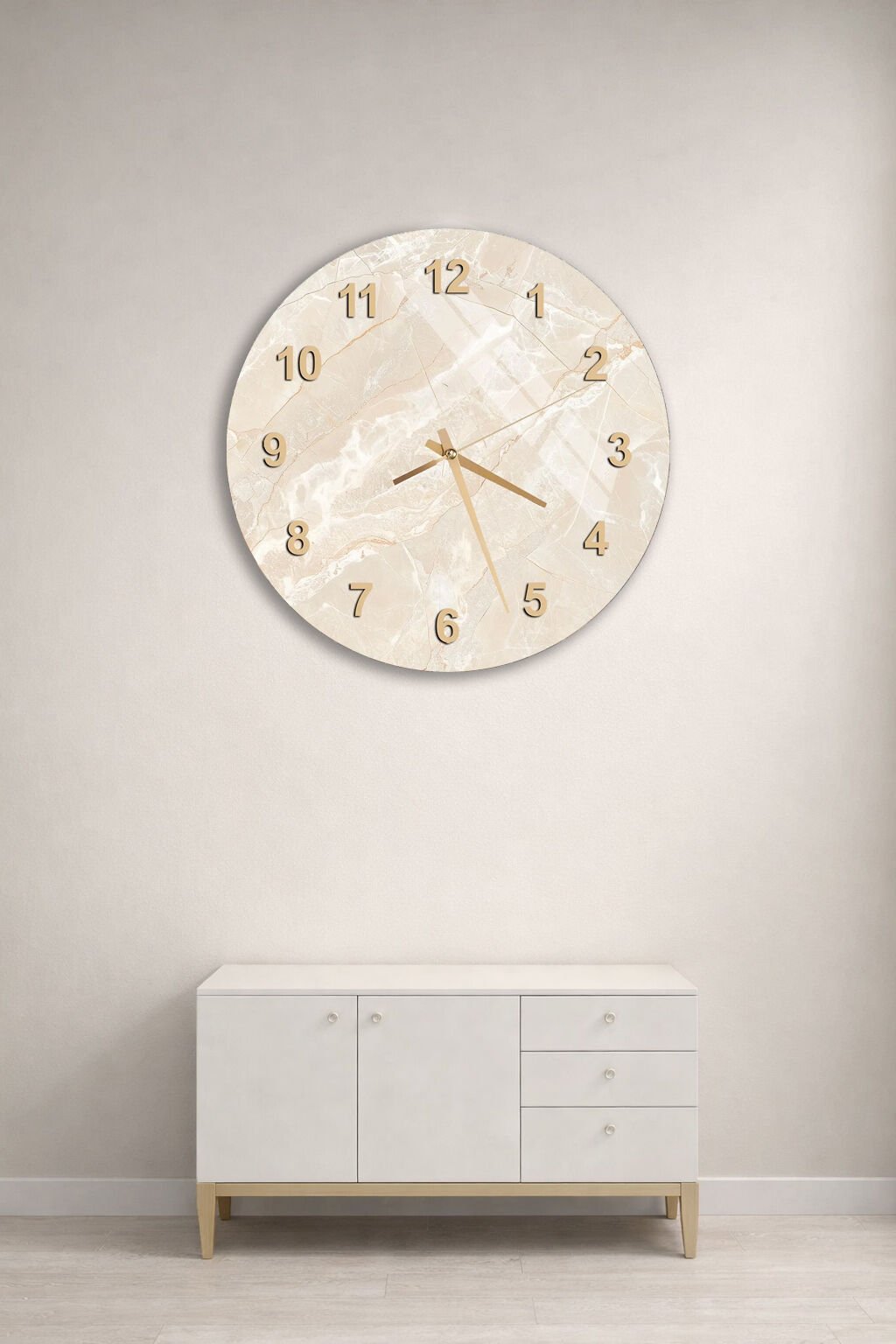 KIRILMAZ CAM DUVAR SAATİ, HEM TABLO HEM SAAT KREM MERMER DESENLİ SADE MODERN EV OFİS HEDİYESİ