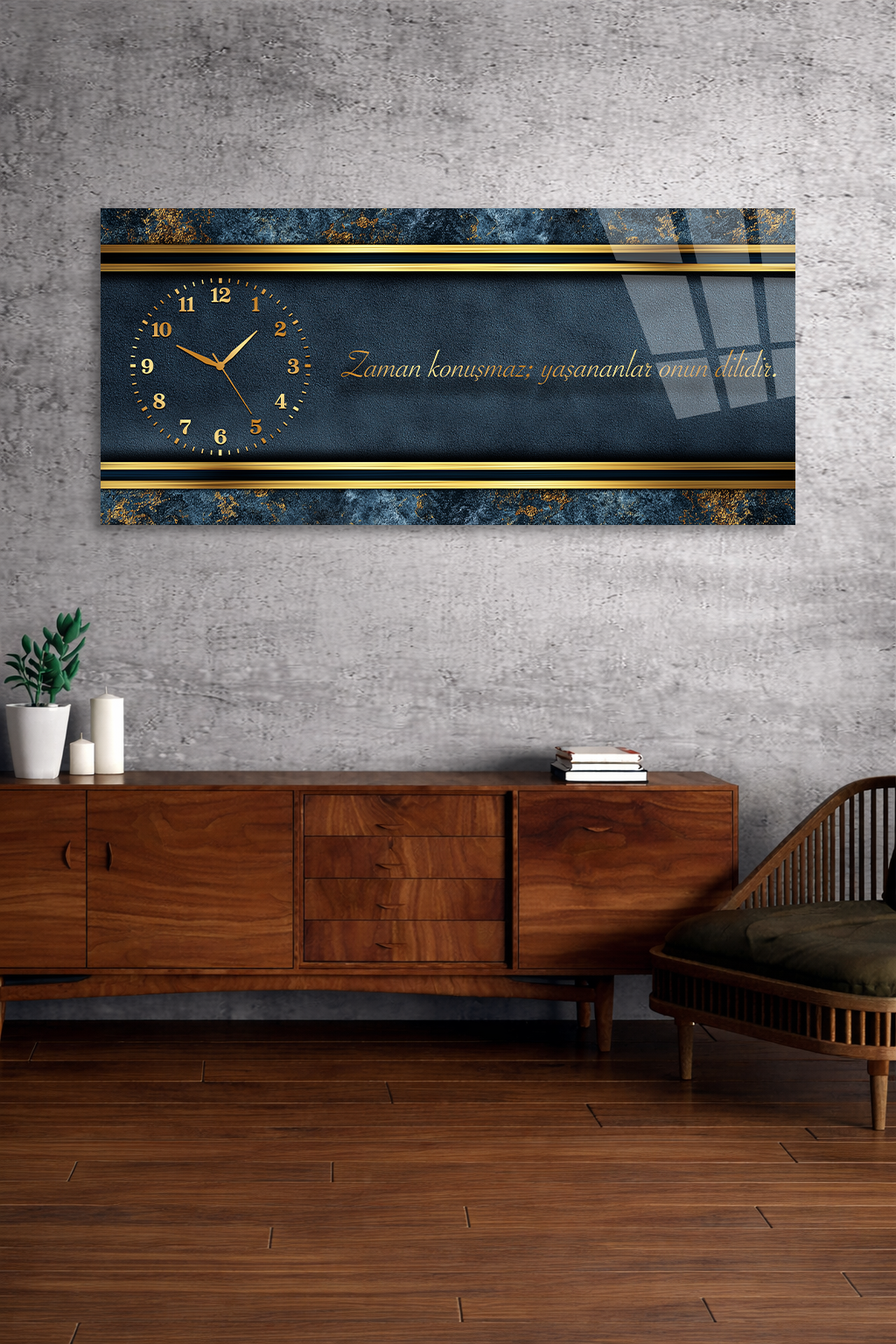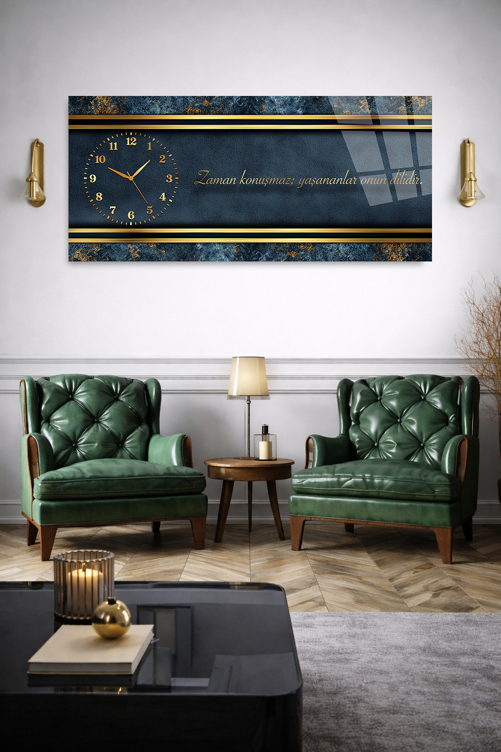Hem şık bir tablo hem de işlevsel bir saat olarak tasarlanan bu özel ürün, ev ve ofis dekorasyonuna modern bir dokunuş katar.