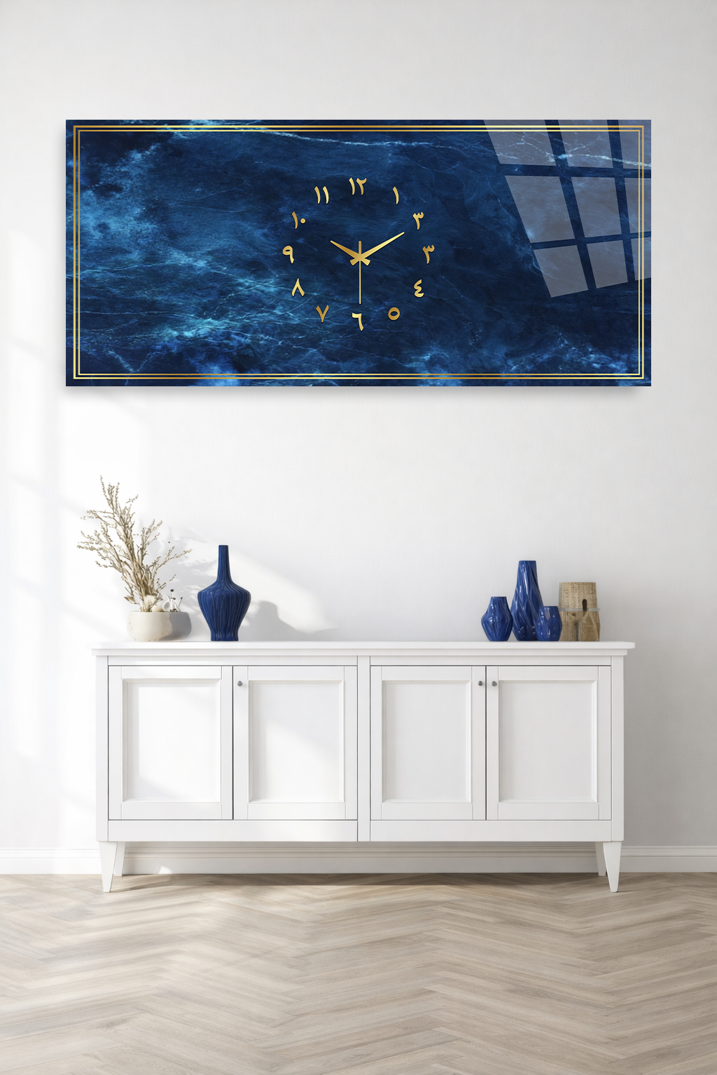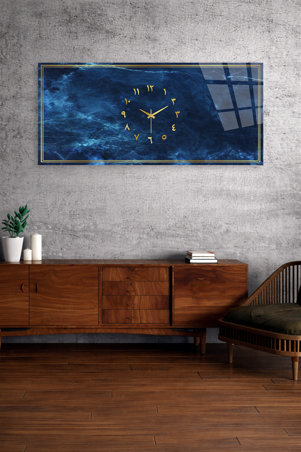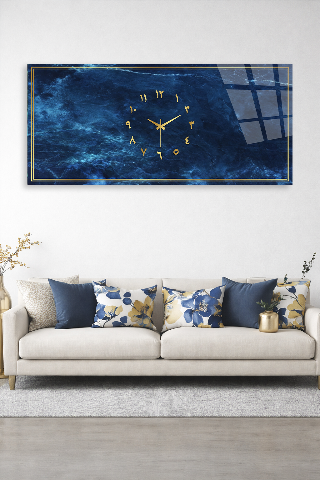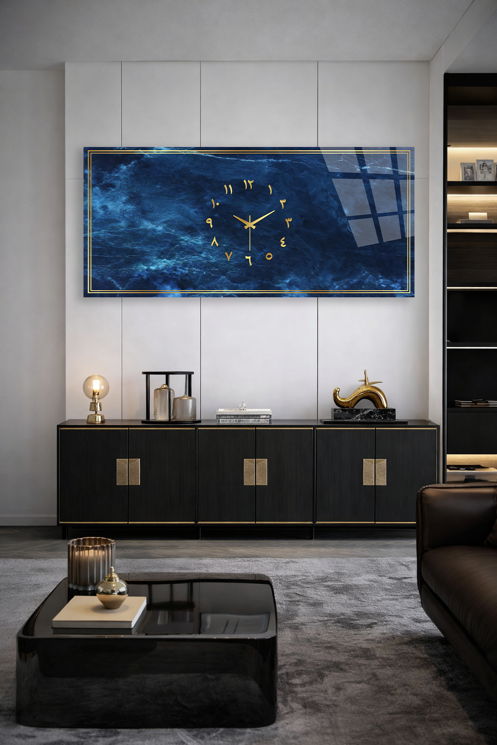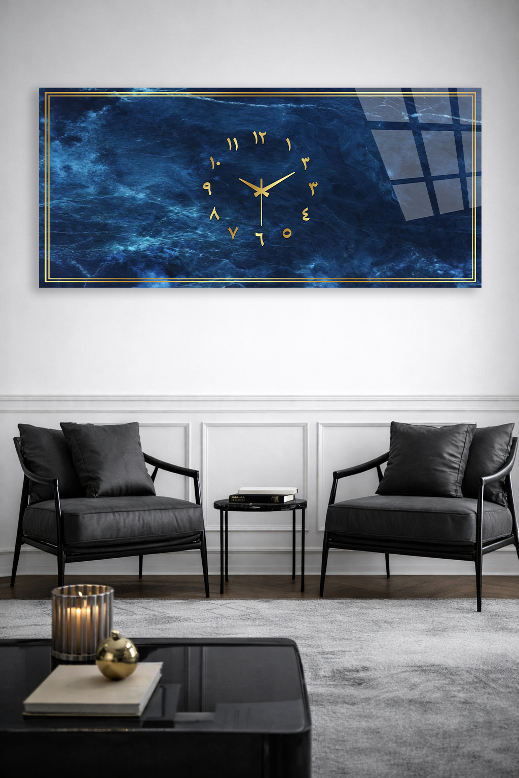 KIRILMAZ CAM DUVAR SAATİ , HEM TABLO HEM SAAT LACİVERT MERMER ALTIN DETAY EV OFİS HEDİYESİ